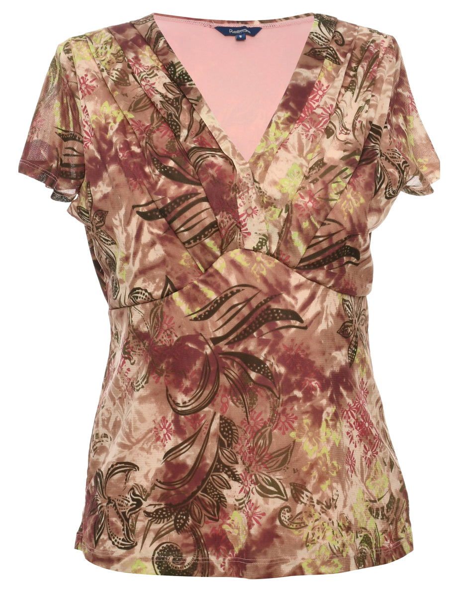 Paisley pale pink blouse with a v-neck and full lining.