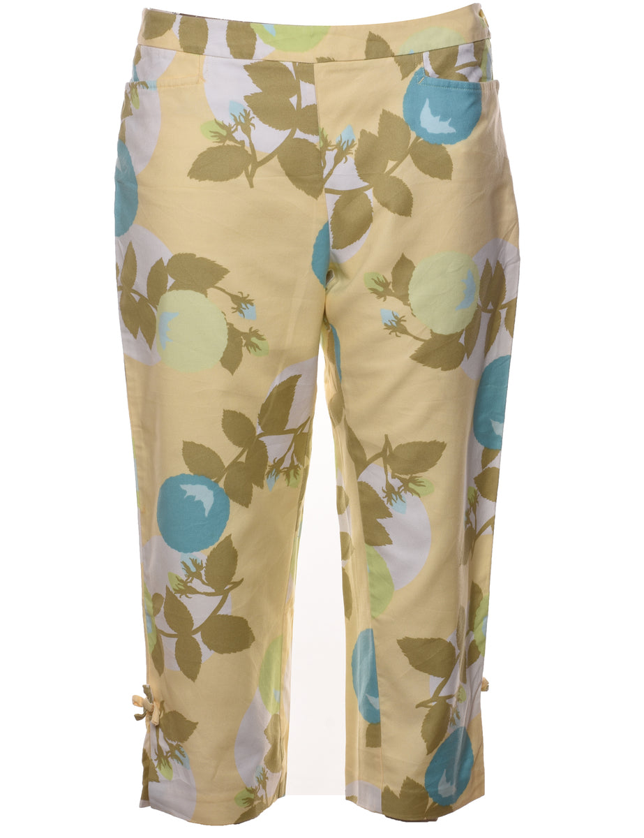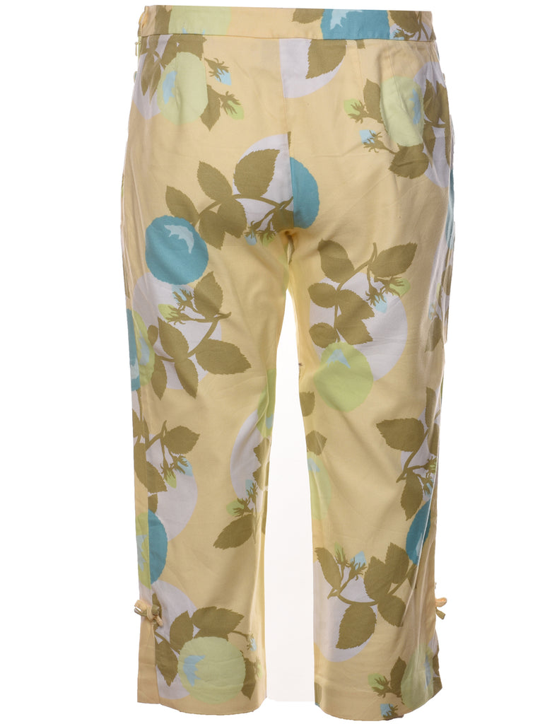 Pale Yellow & Grey Floral Cropped Trousers - W30 L21