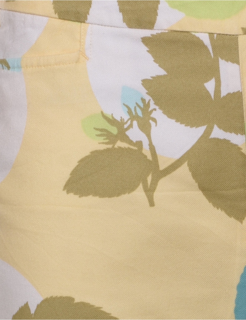 Pale yellow & grey cropped floral trousers complete with multiple pockets.