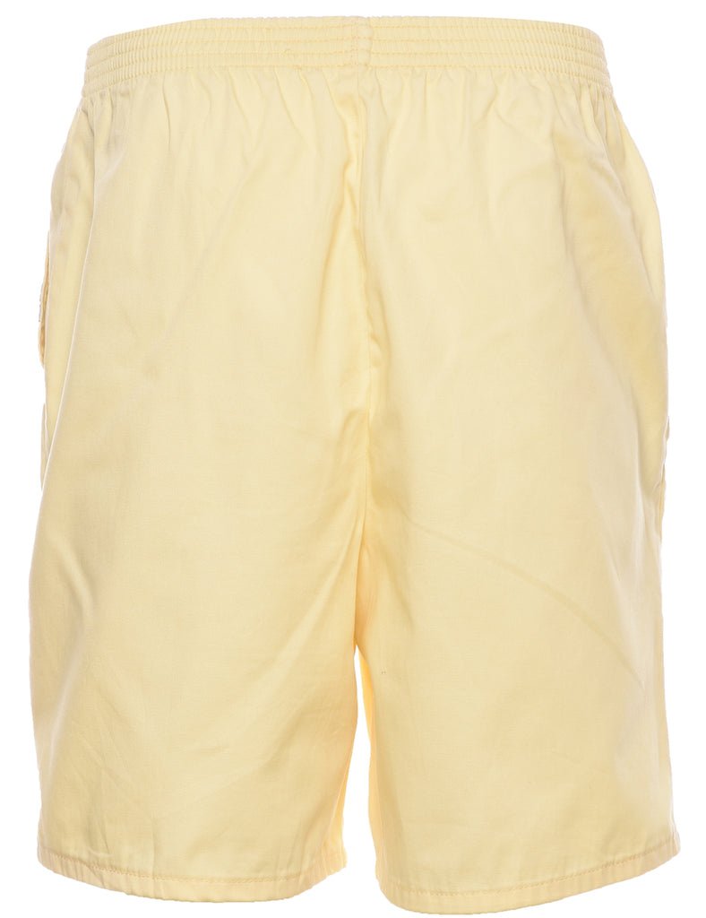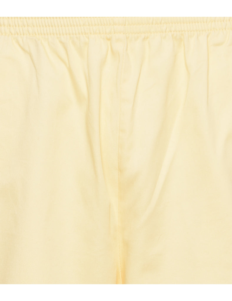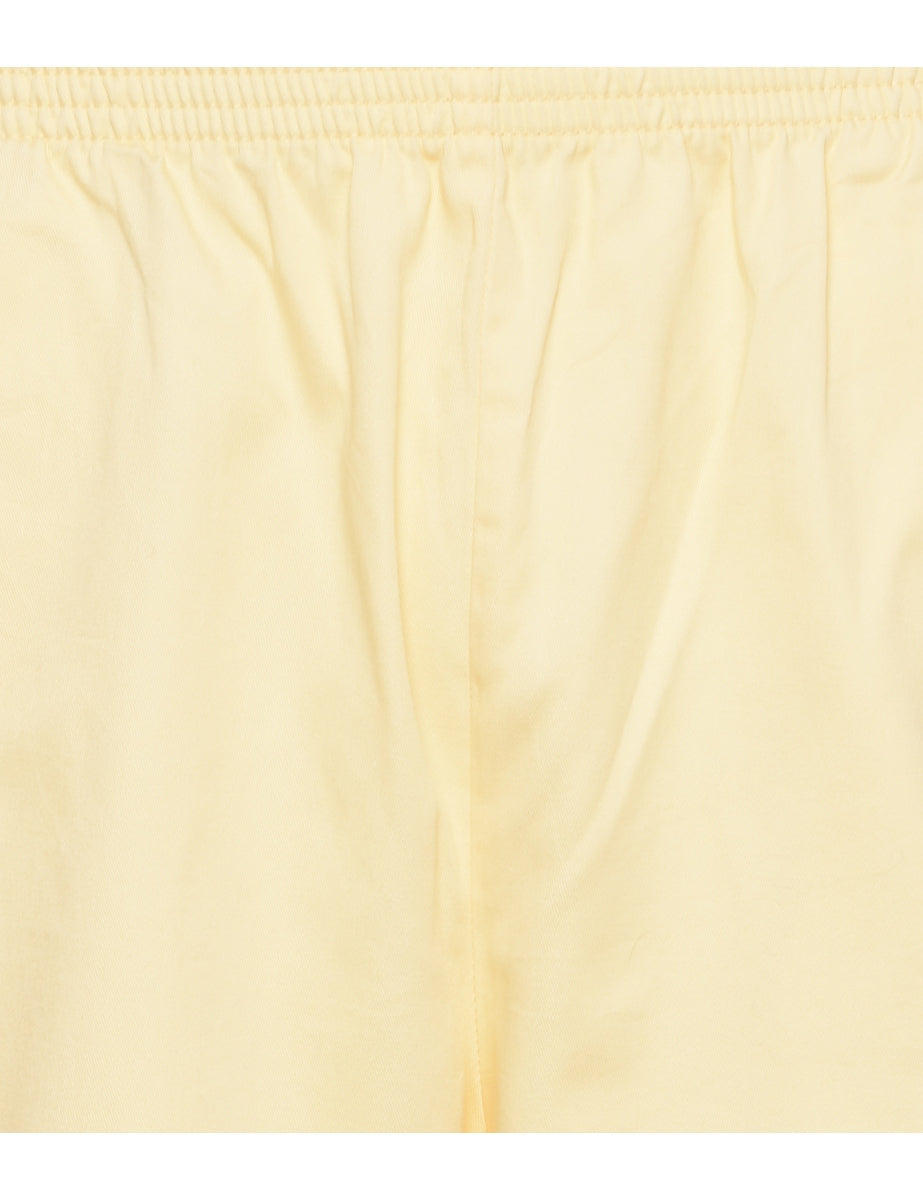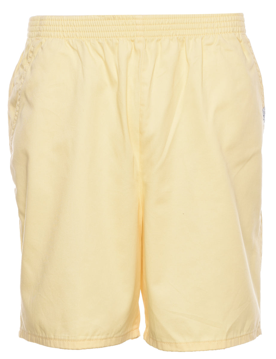 Plain shorts comes in pale yellow with elastic waist and multiple pockets.