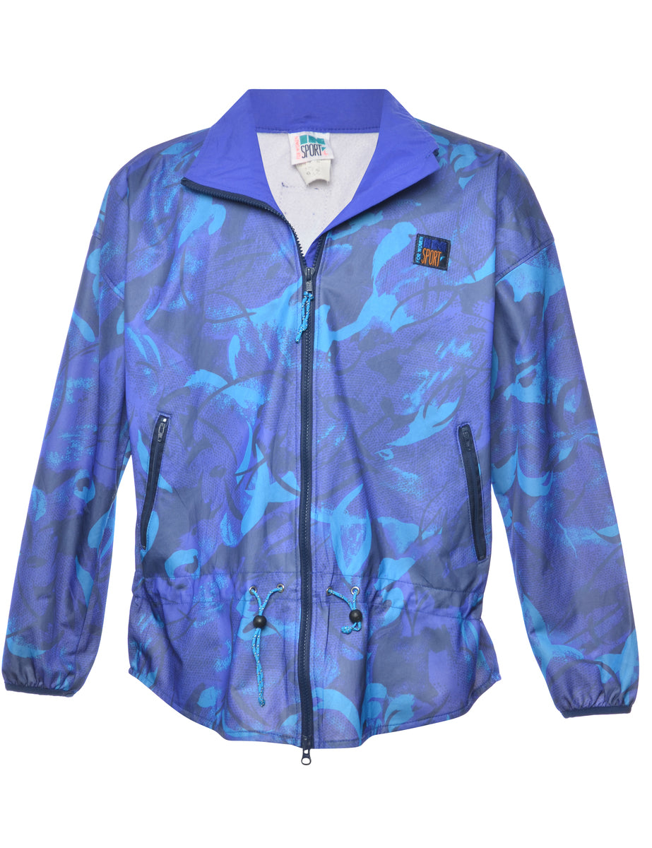 Patterned nylon jacket. Comes in blue with full lining.