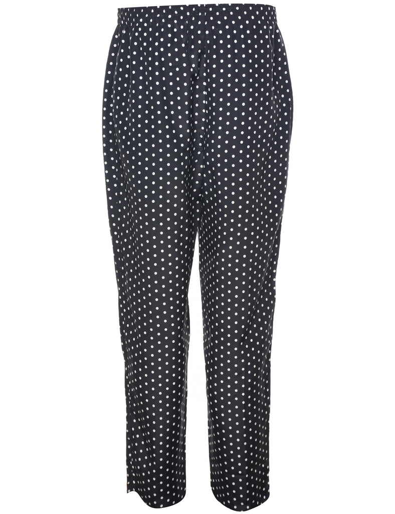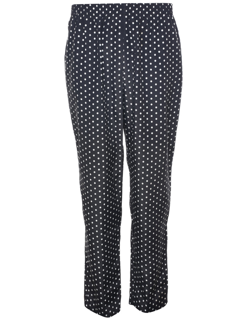 Printed trousers with polka dot comes in black with an elasticized waist.