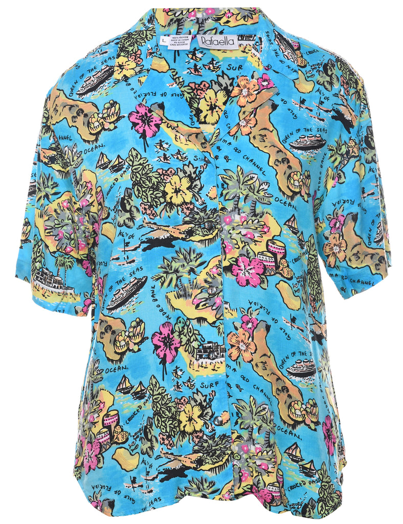 Floral multi-colour Rafaella hawaiian shirt with a revere front.