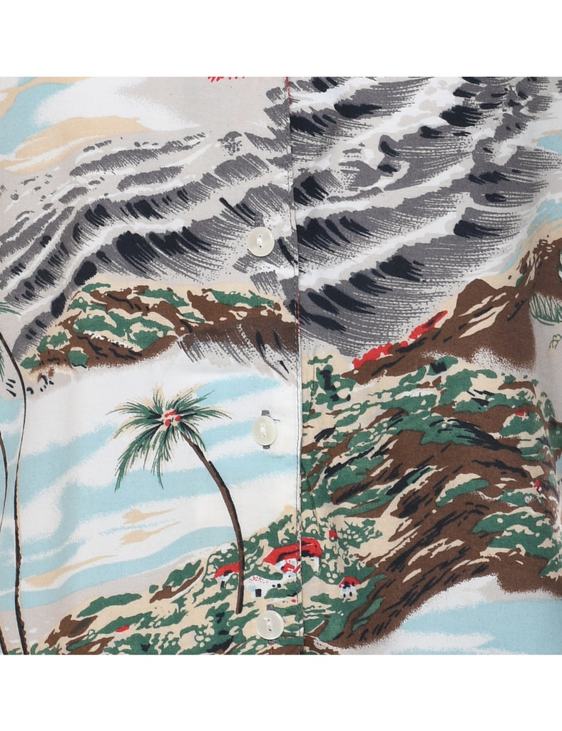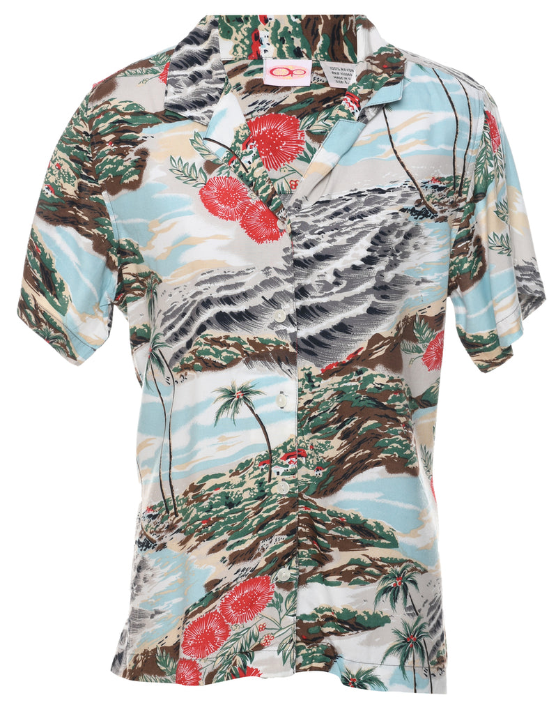 Short sleeve multi-colour hawaiian shirt with a revere front.