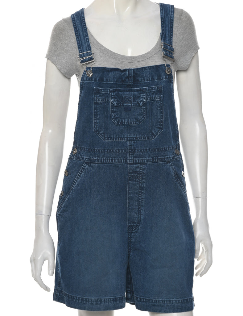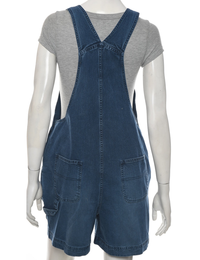 Straight leg cropped dungarees comes in indigo with adjustable strap and multiple pockets.