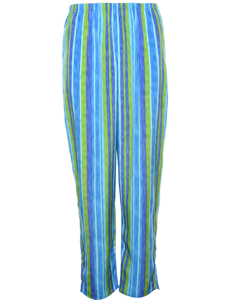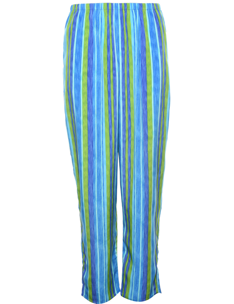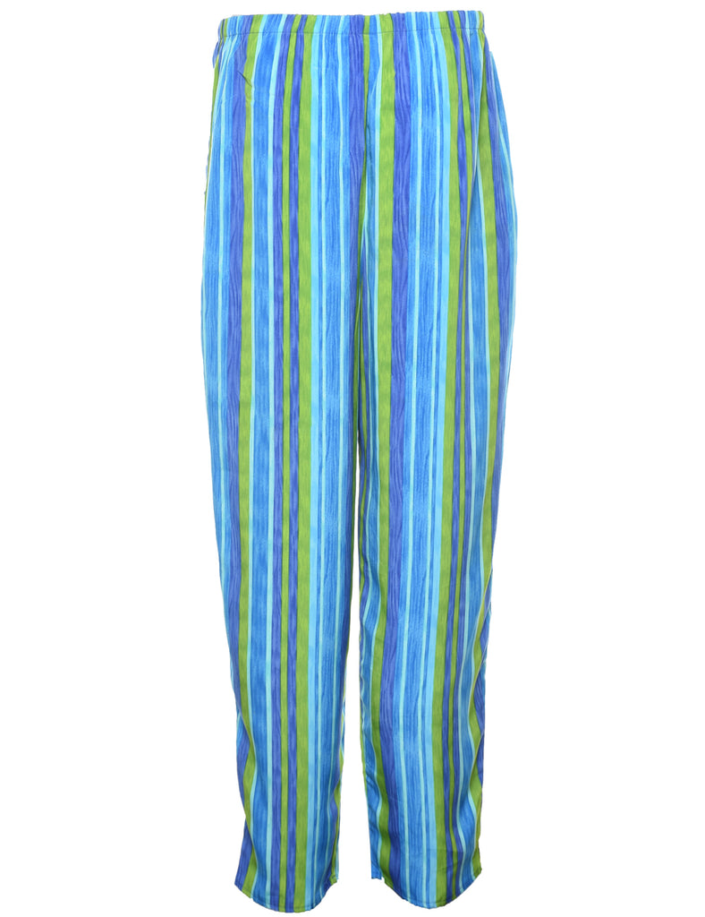Striped printed trousers in multi-colour with multiple pockets and an elasticized waist.