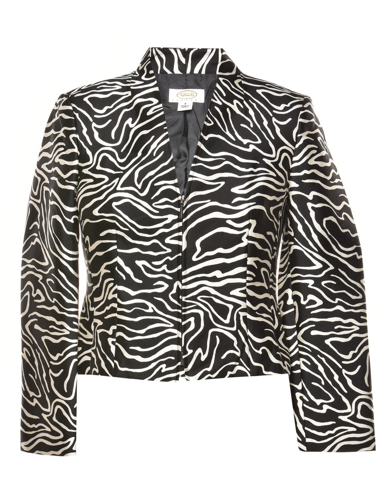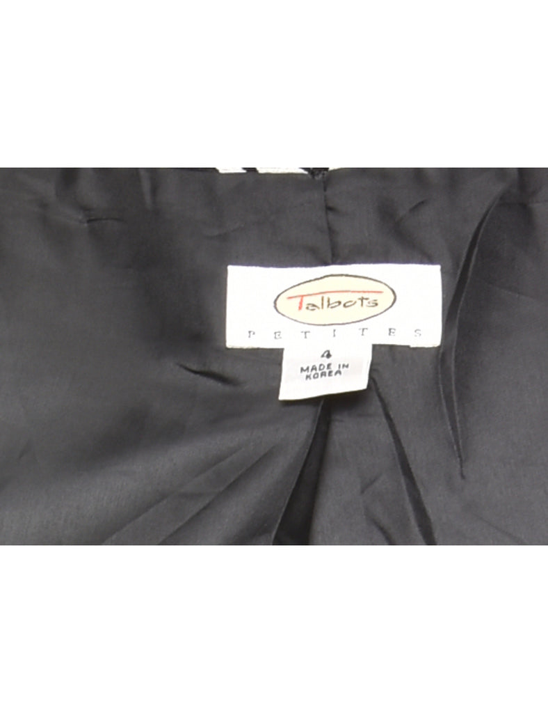 Talbots zip front jacket in black & white with full lining and built in shoulder pads.
