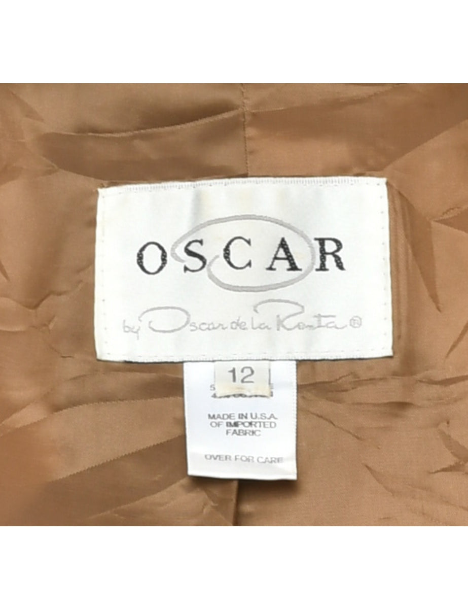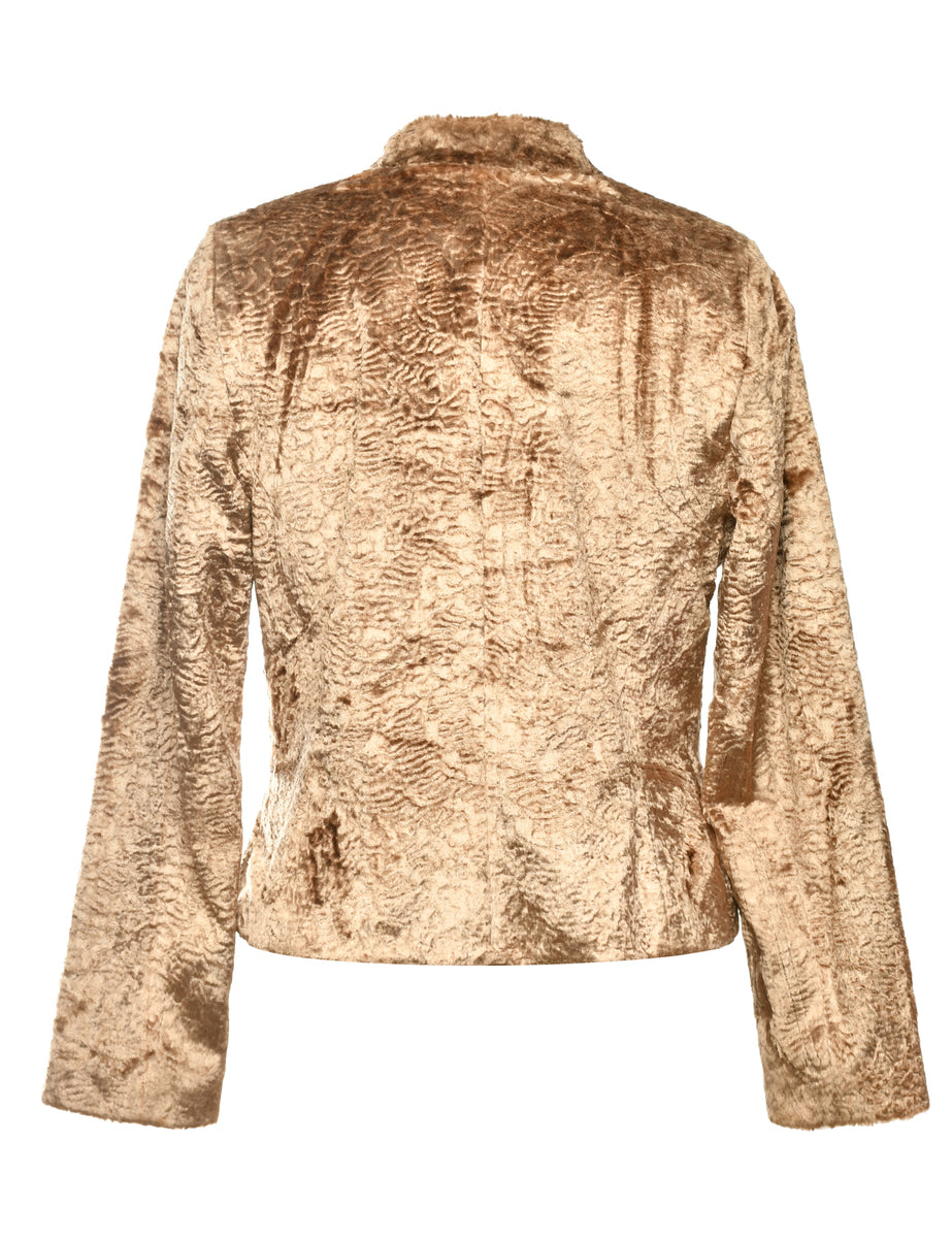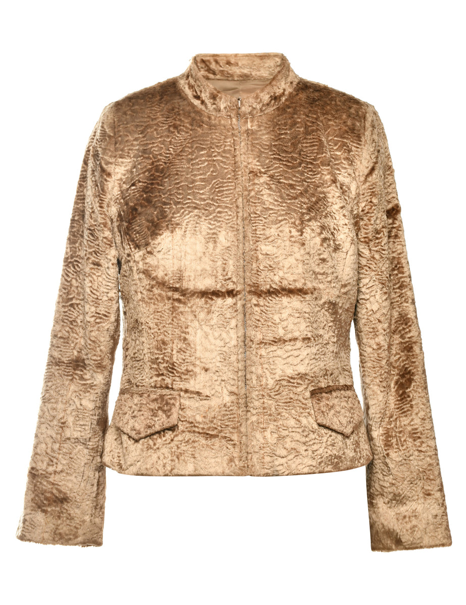 Zip front jacket in brown with full lining and built in shoulder pads.