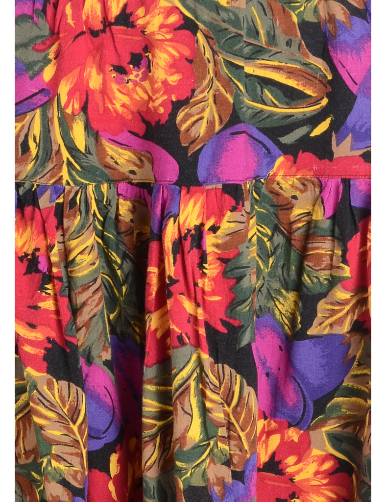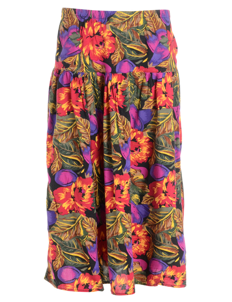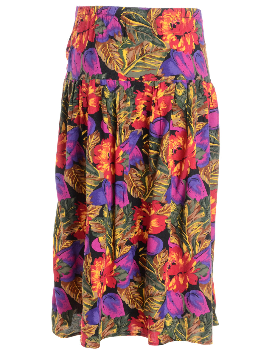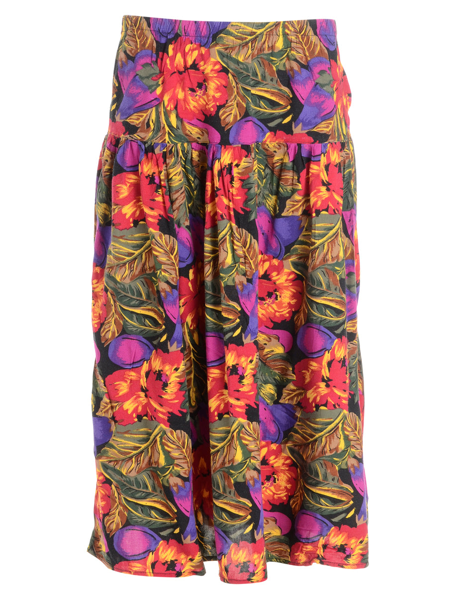 Floral multi-colour 1990s flared skirt with an elasticized waist.