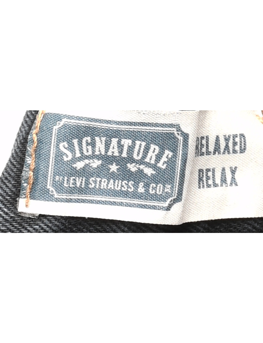 Cut-off denim shorts. Levi's in black with multiple pockets.