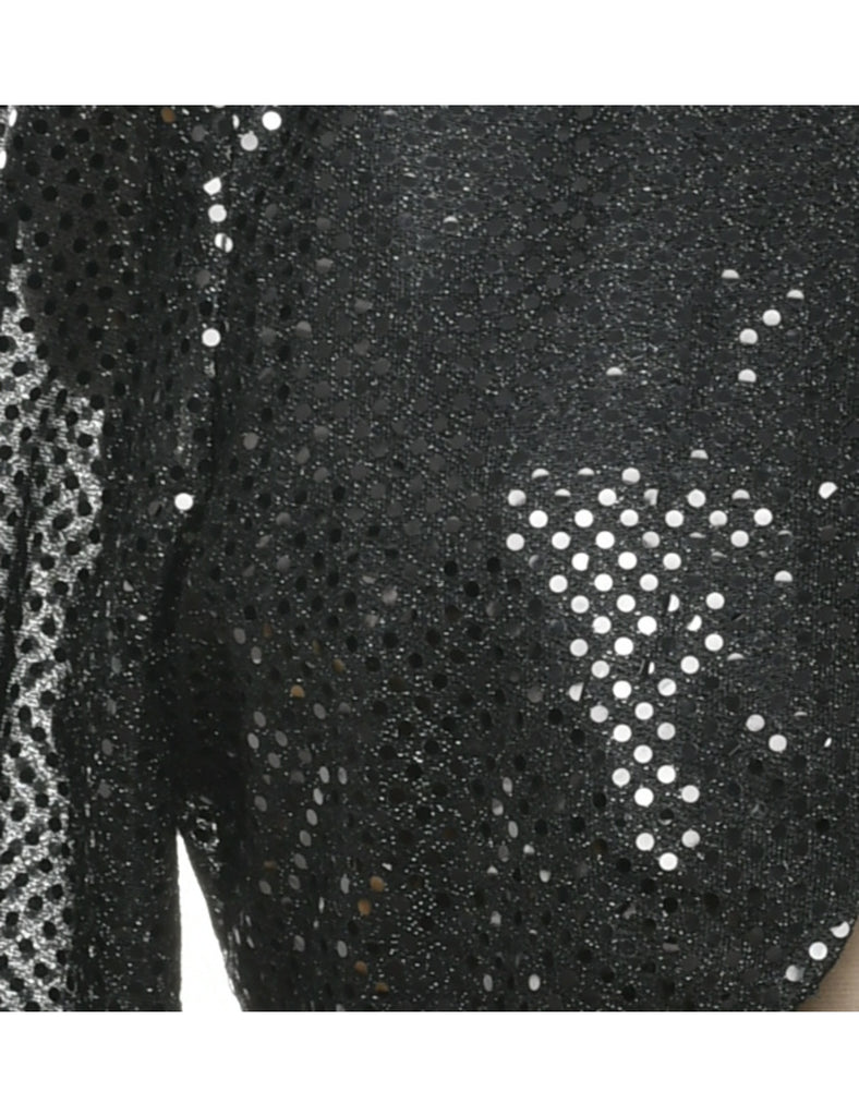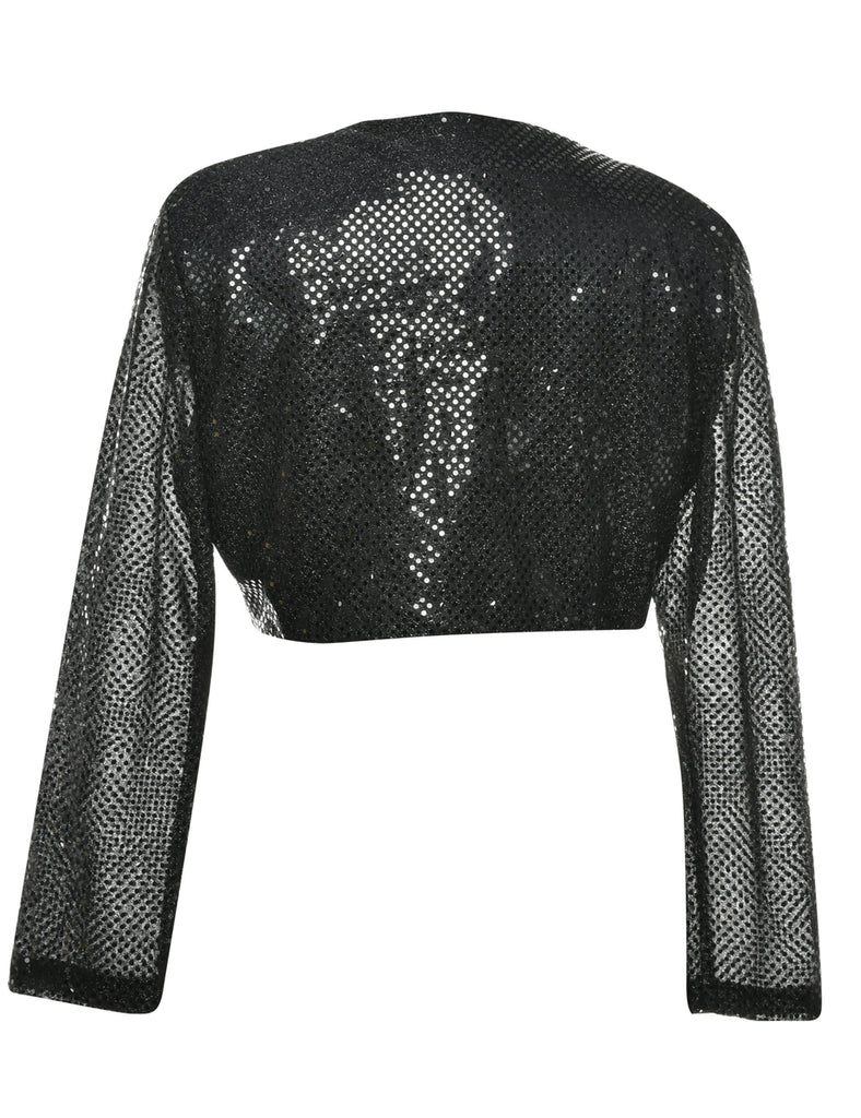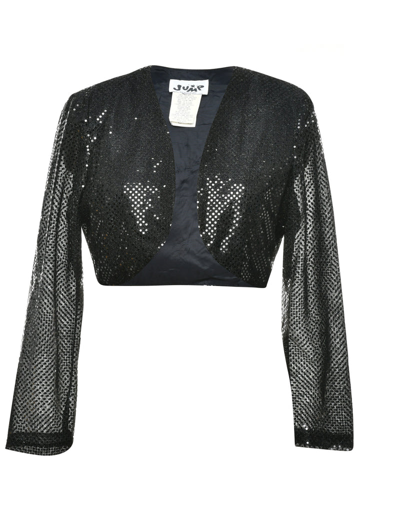 Metallic look evening jacket in black with sequins and removable shoulder pads.