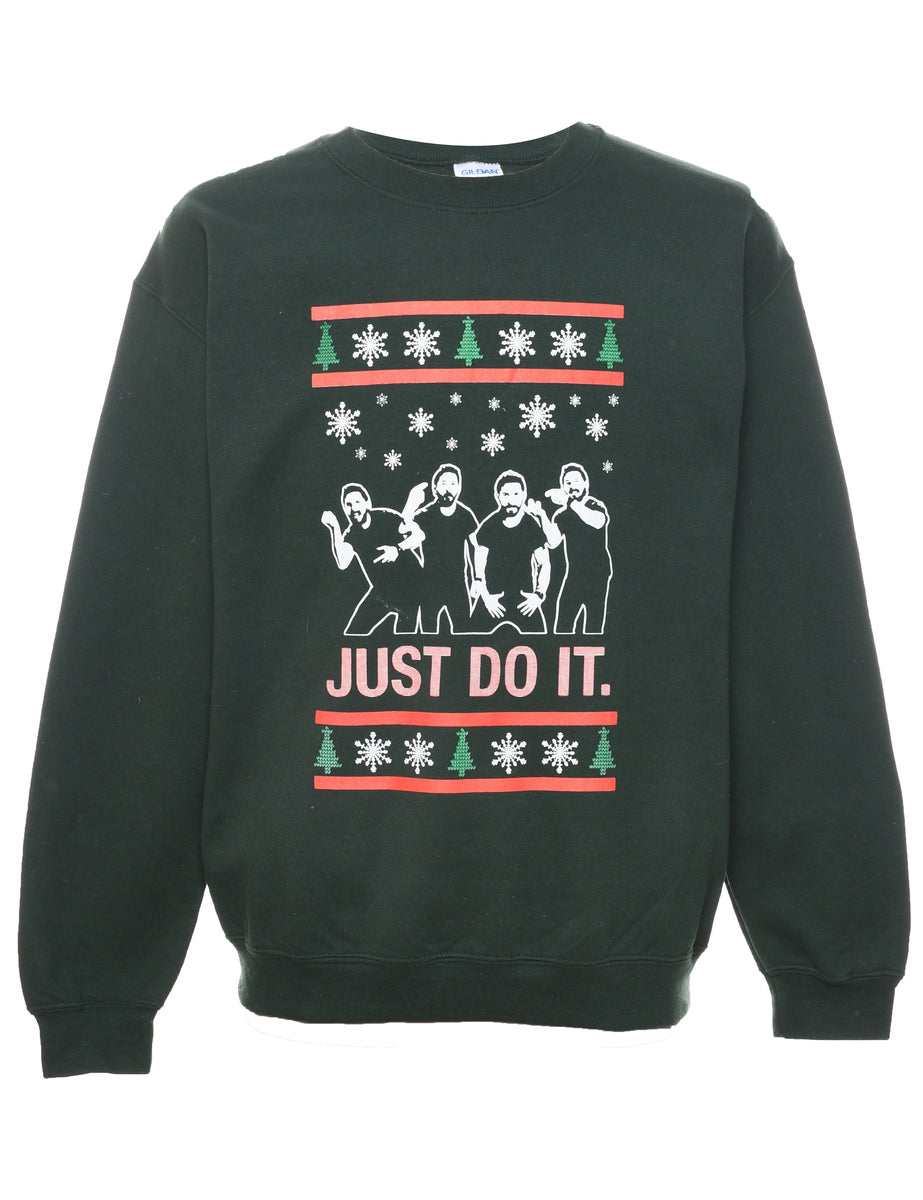 Festive season christmas sweatshirt comes in dark green with a drop shoulder.