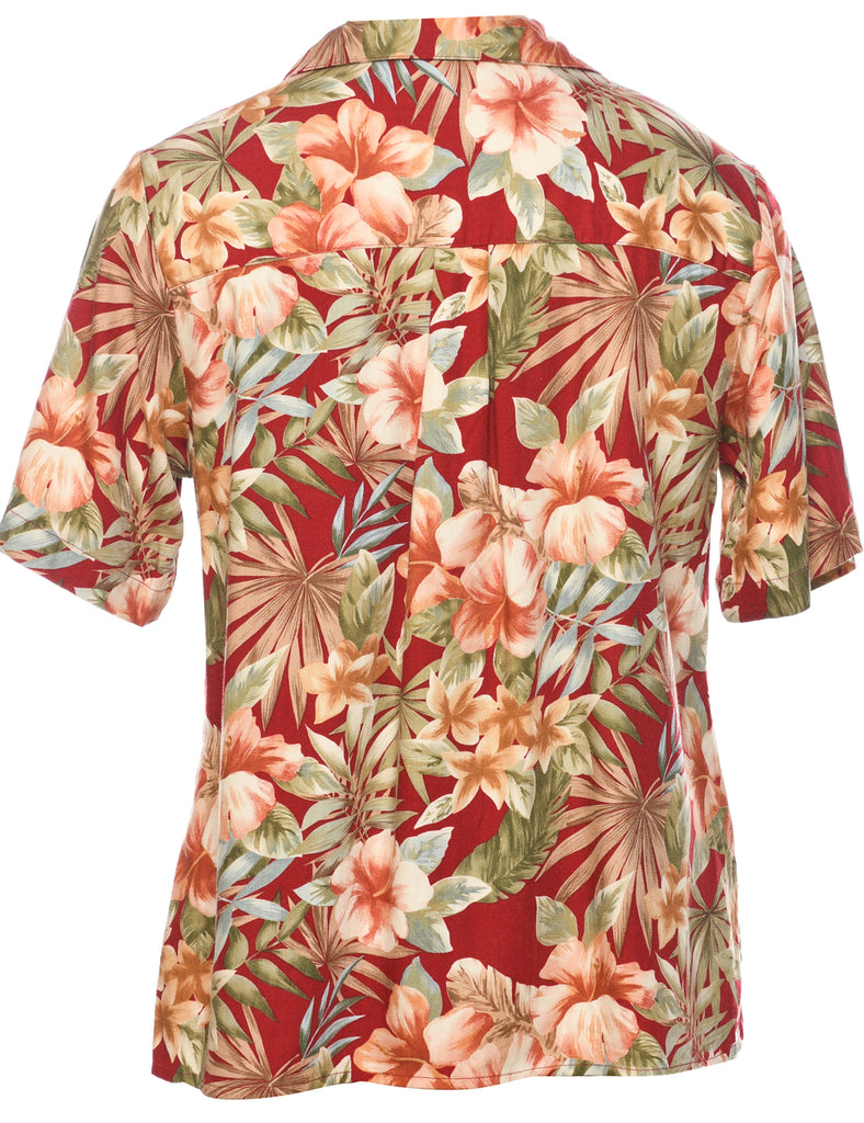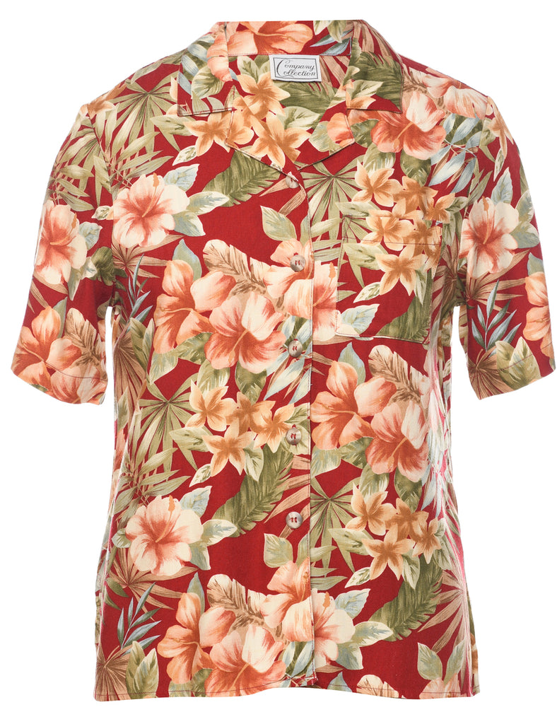 Floral multi-colour hawaiian shirt with a revere front and one pocket.