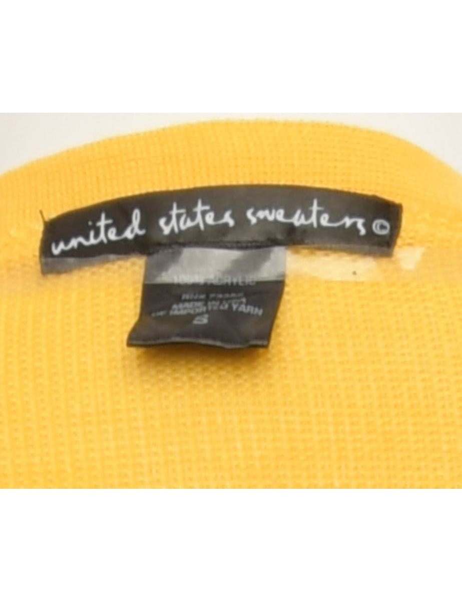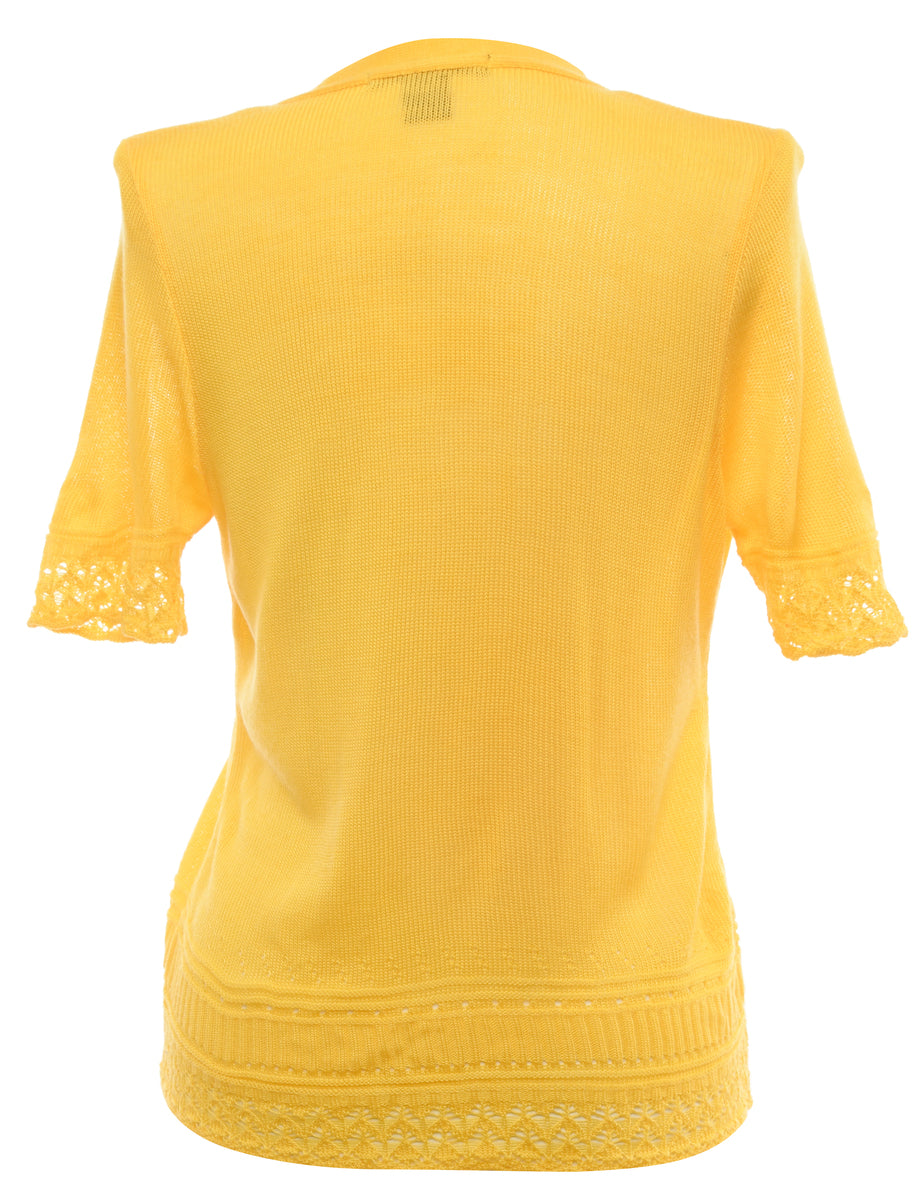 Floral Knit Yellow Cardigan - M