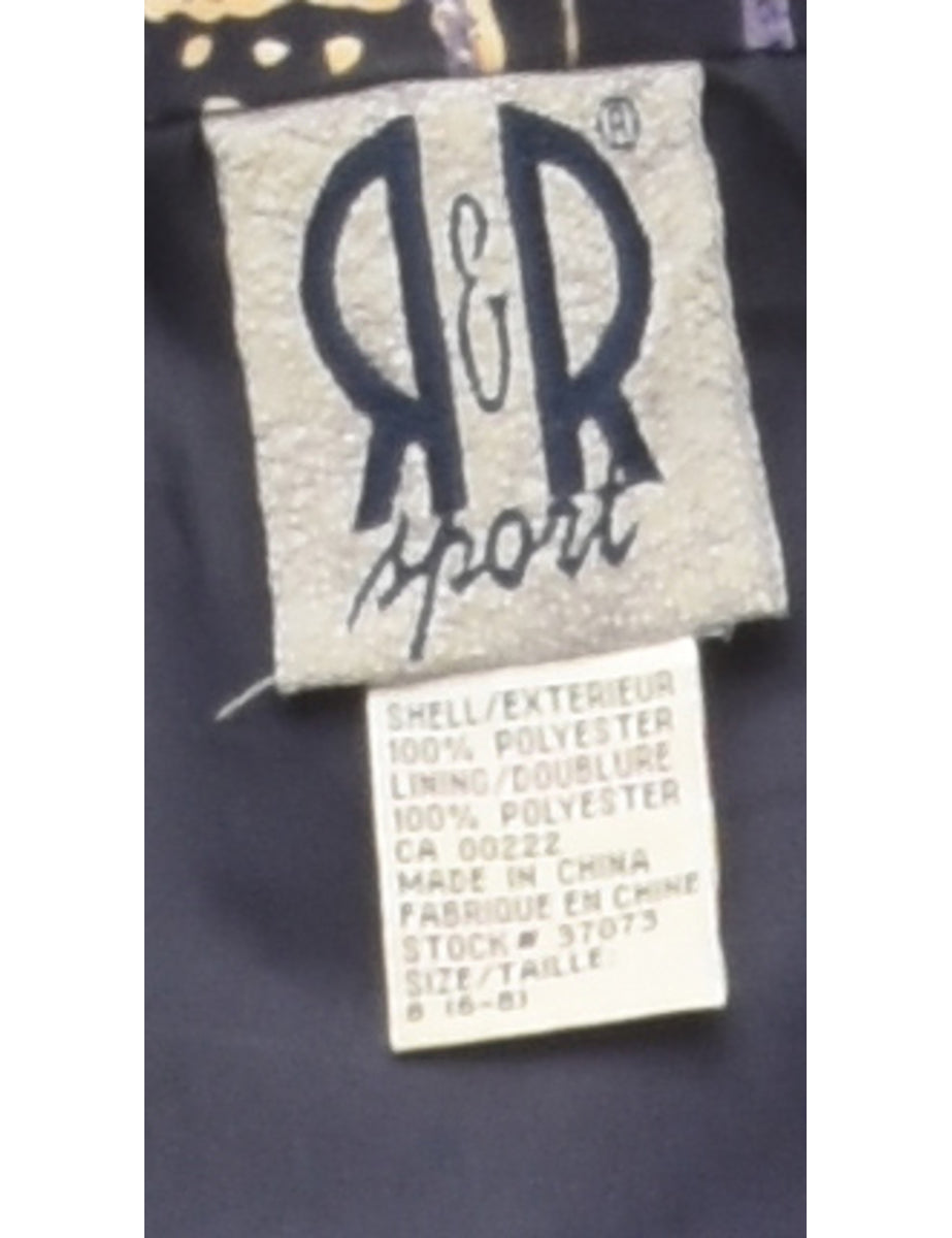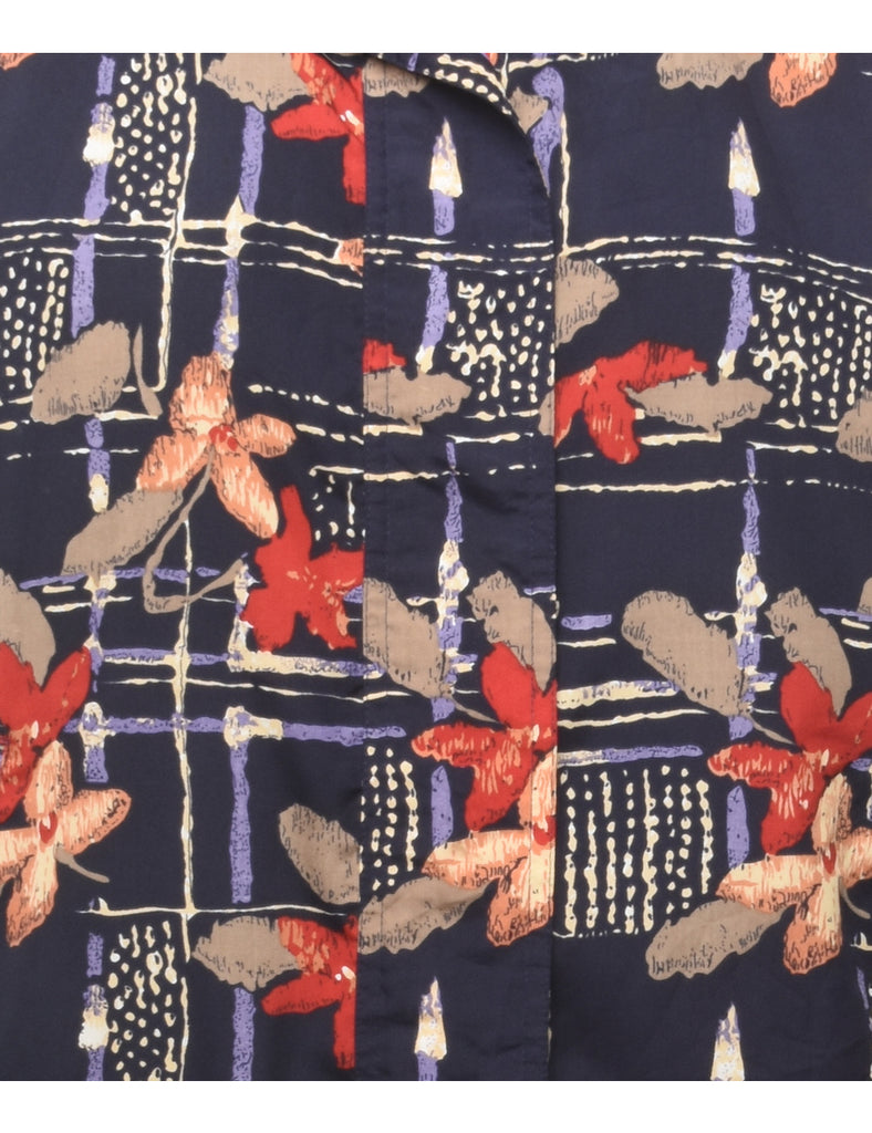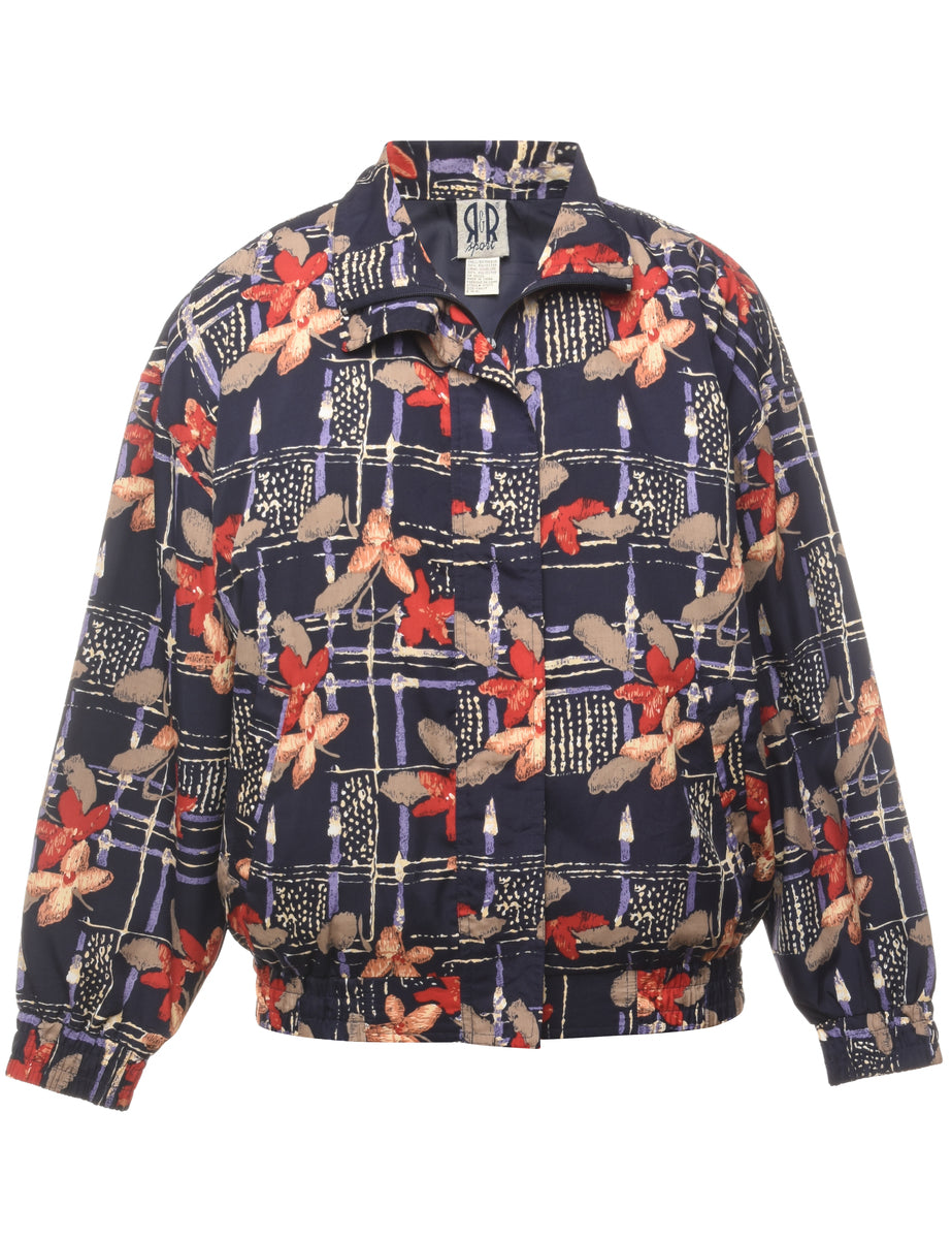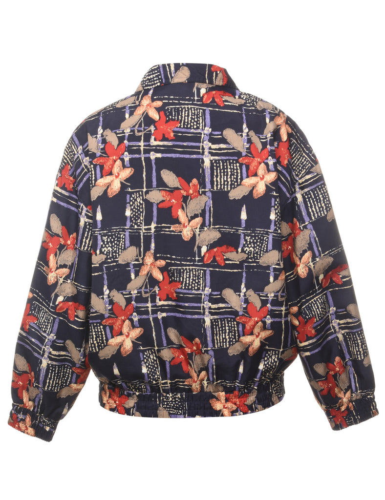 Floral pattern jacket comes in navy with full lining and two pockets.