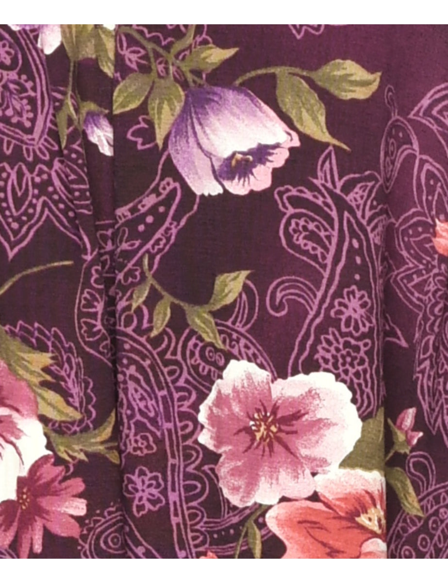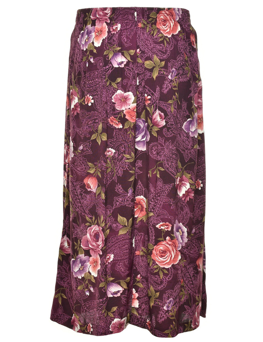 Floral pattern skirt in plum with an elasticized back.