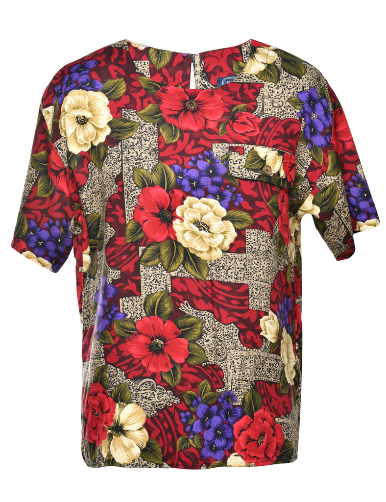 Floral printed top. Comes in multi-colour with a round neck and removable shoulder pads.