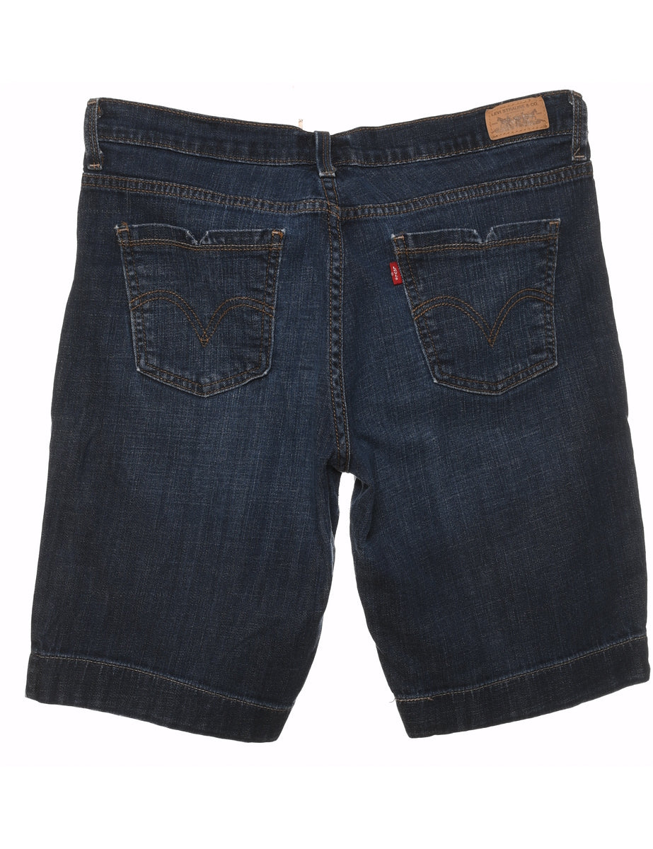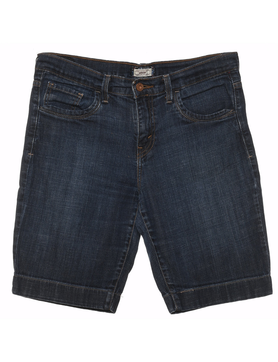 Levi's denim shorts in dark wash with belt loops and multiple pockets.