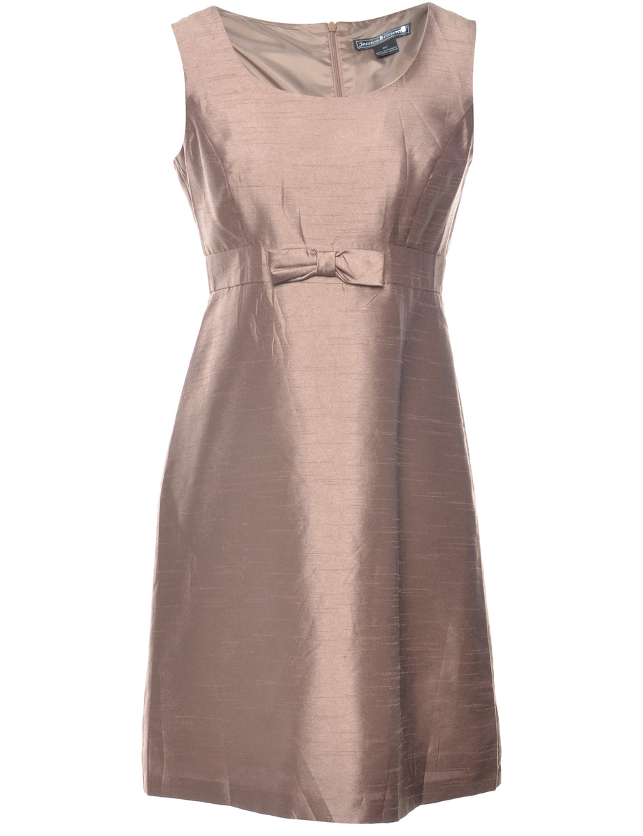 Evening dress. Comes in light brown with a pussy bow and full lining.