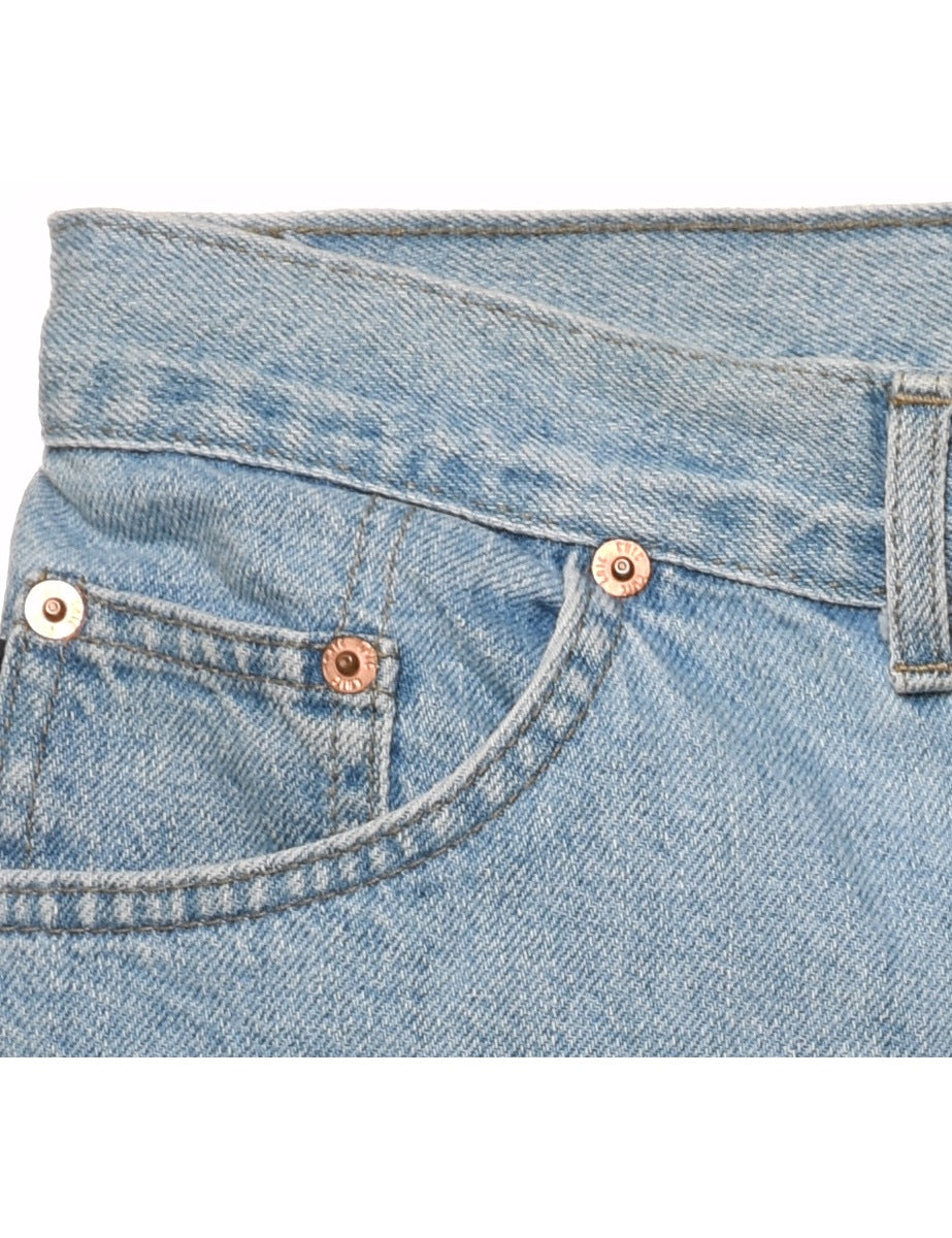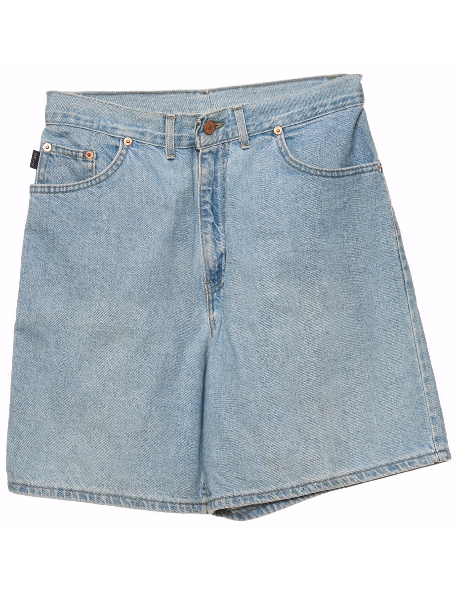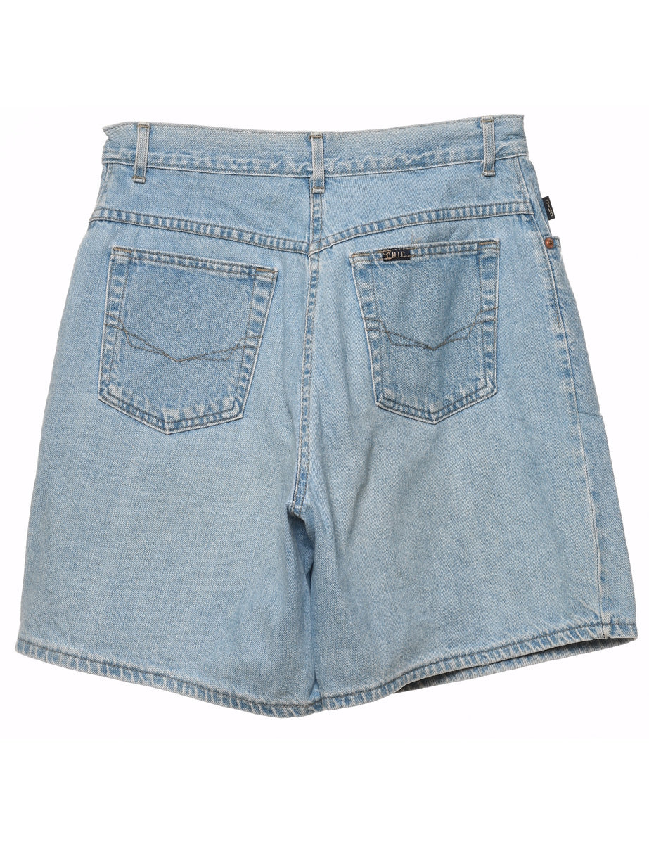Denim shorts. Comes in light wash with belt loops and multiple pockets.