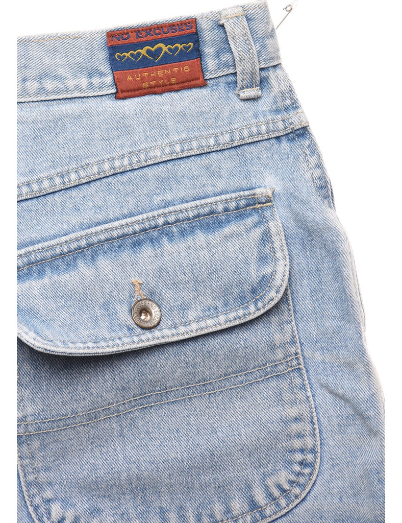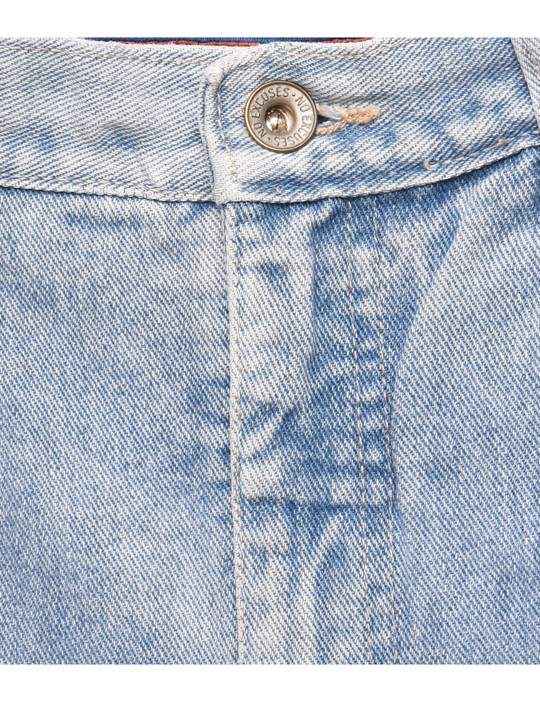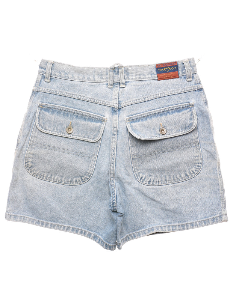 Denim shorts comes in light wash with belt loops and multiple pockets.