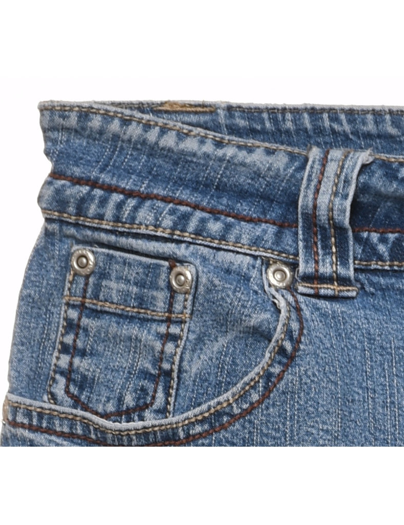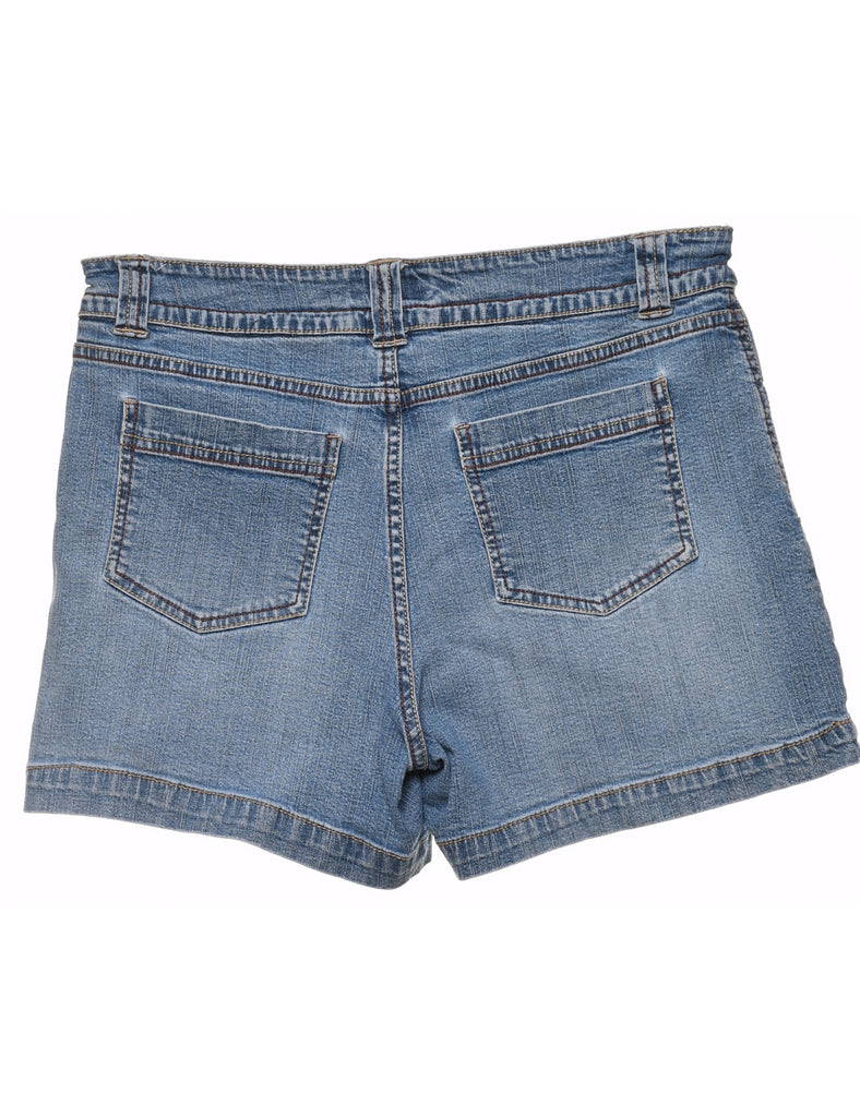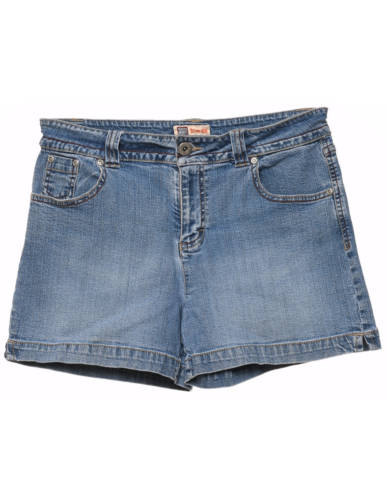 Denim shorts comes in light wash with belt loops and multiple pockets.
