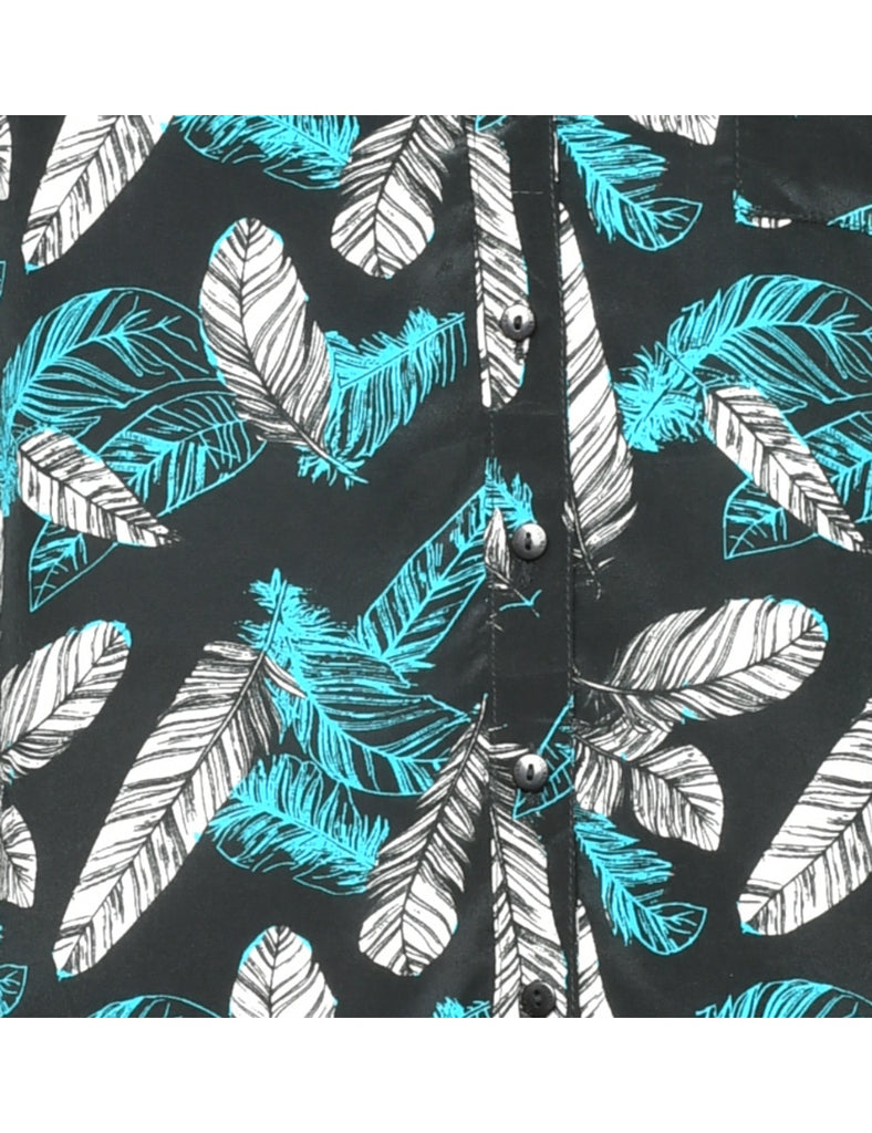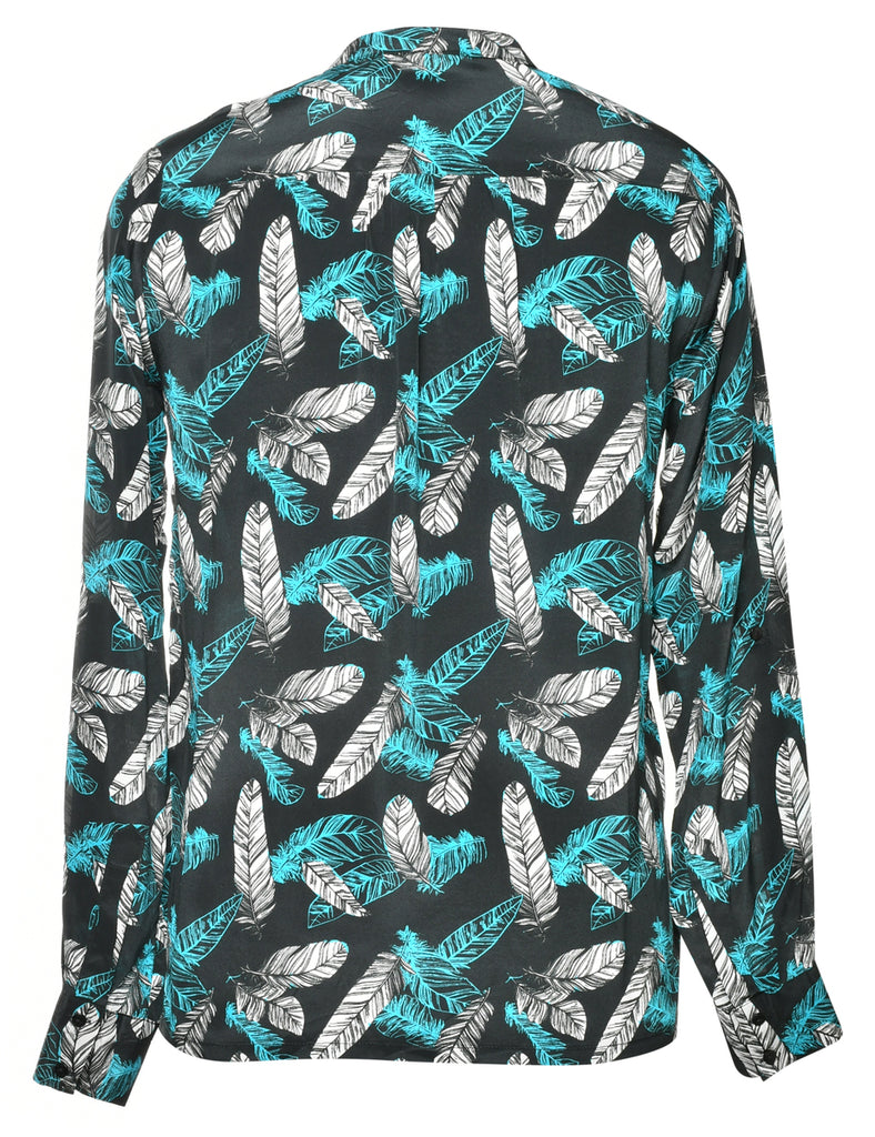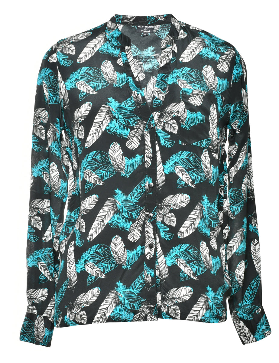 Long sleeved multi-colour blouse with a v-neck and one pocket.