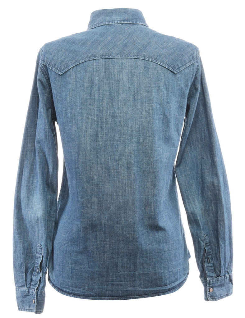Long sleeved denim shirt from the in medium wash with two pockets.
