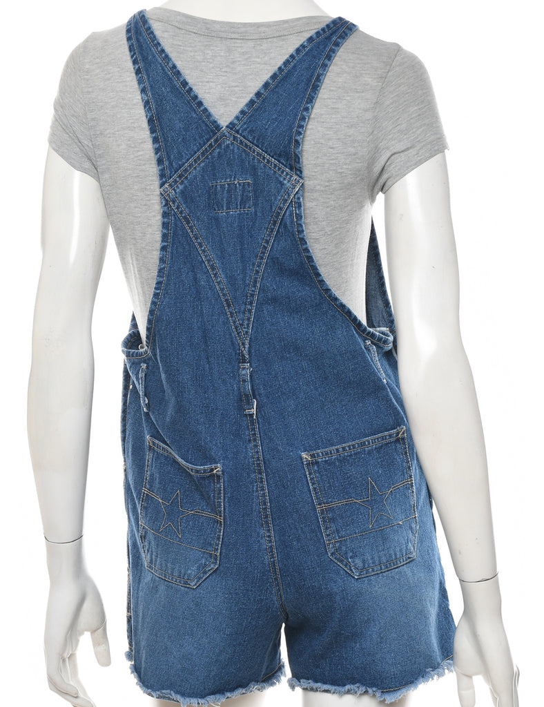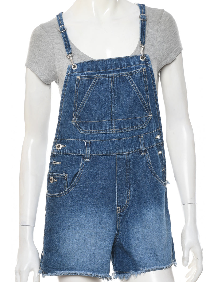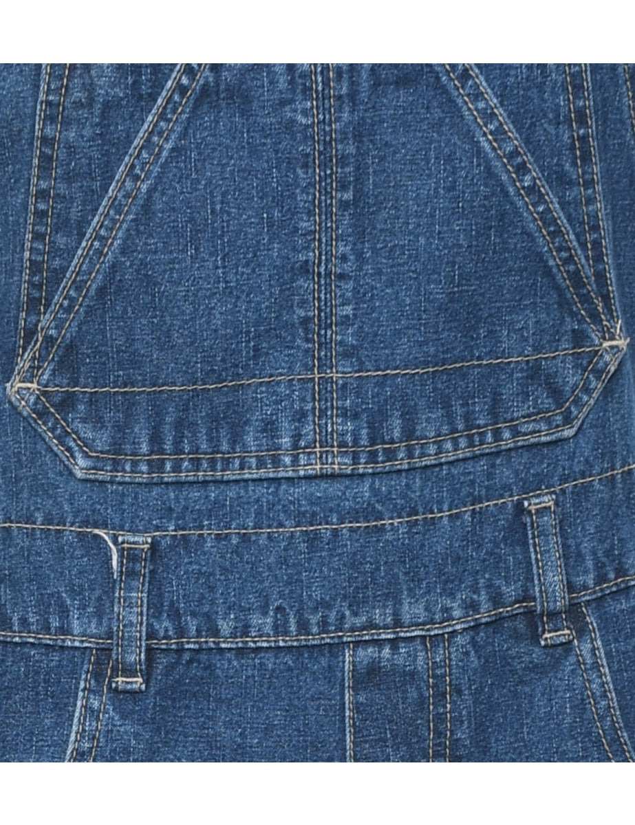Medium wash cropped dungarees complete with adjustable straps and pockets.