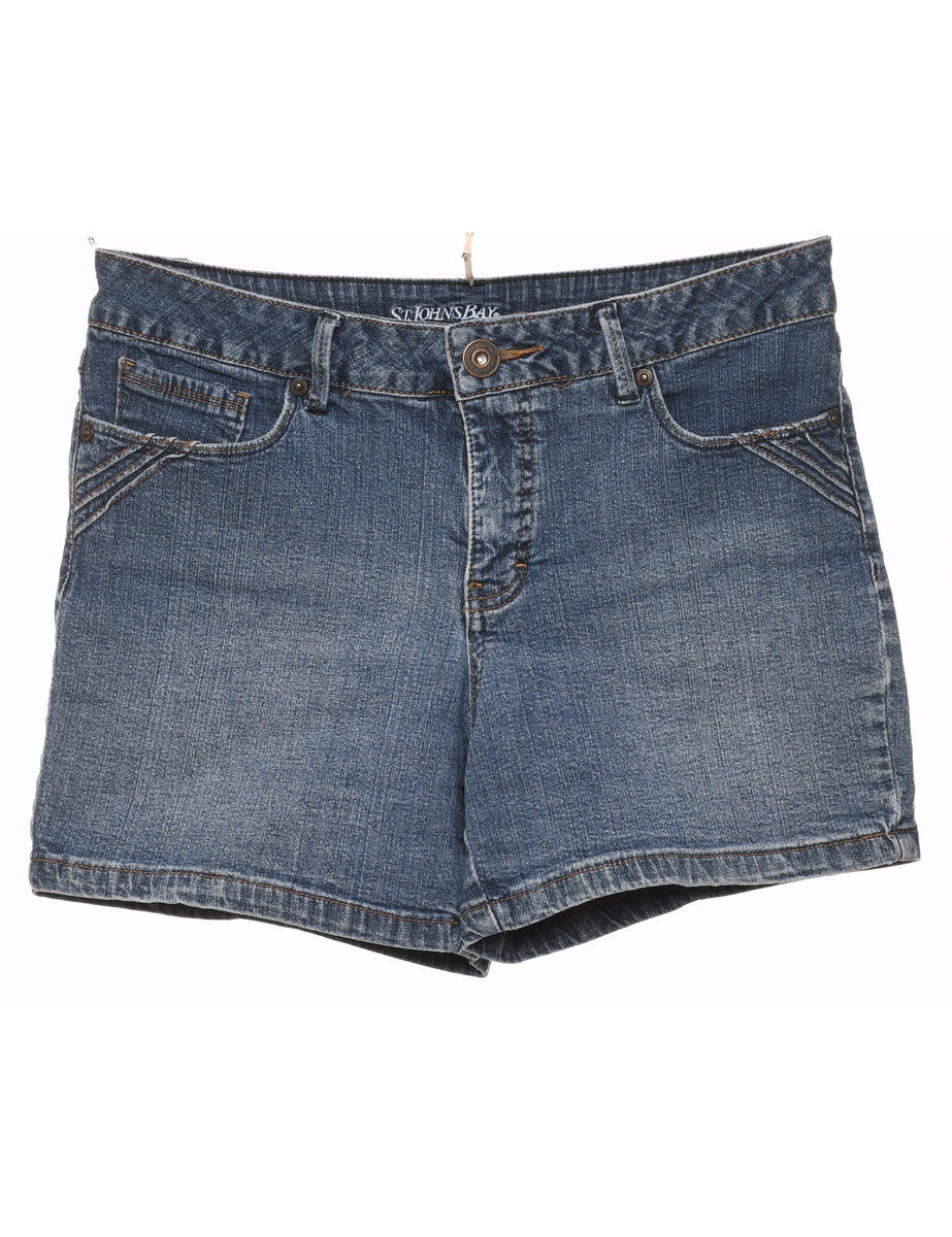 Denim shorts from the in medium wash with belt loops and multiple pockets.