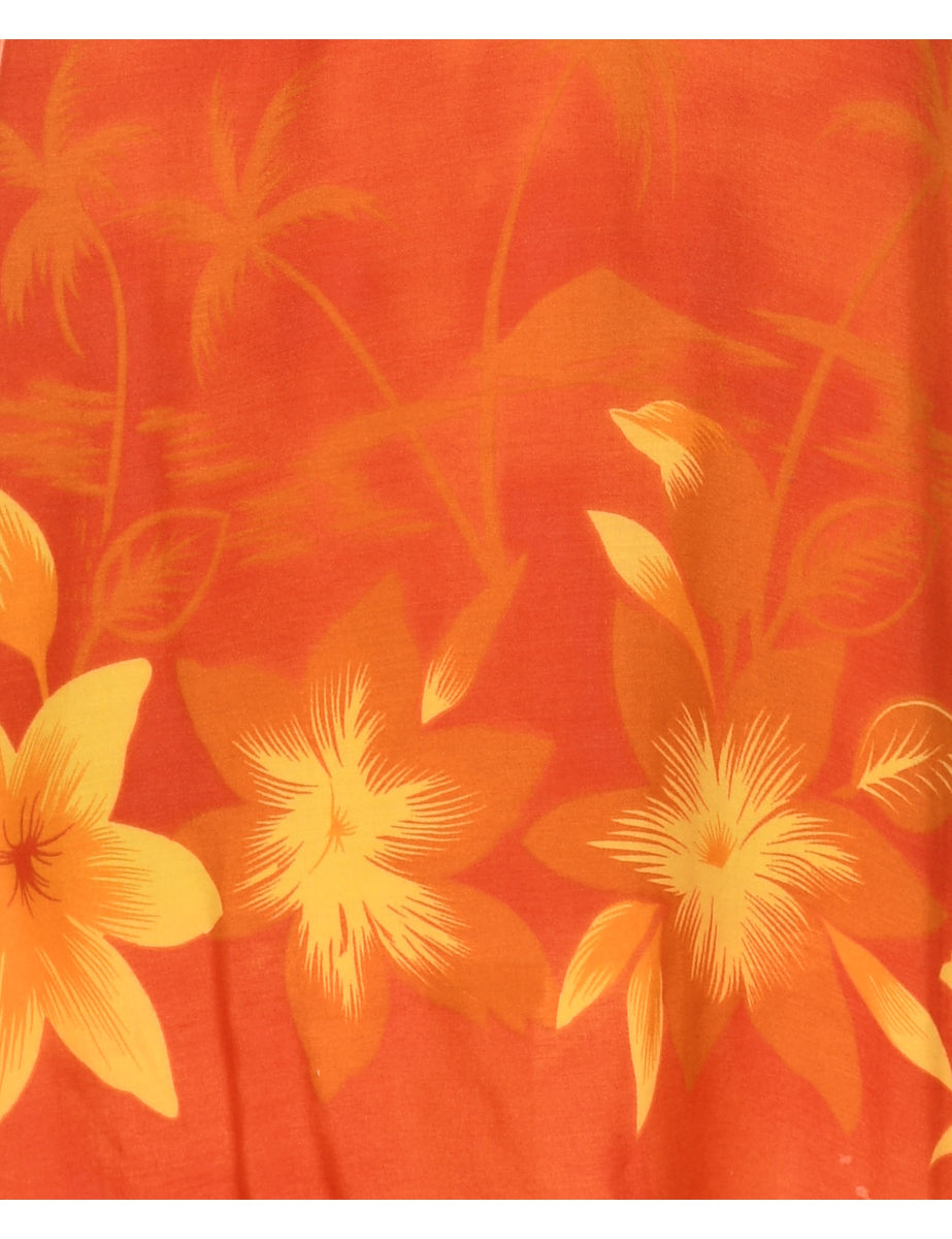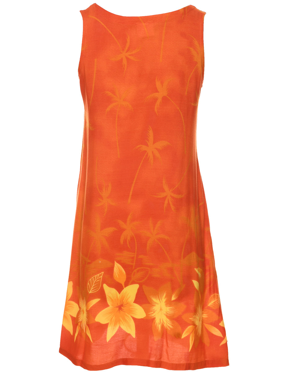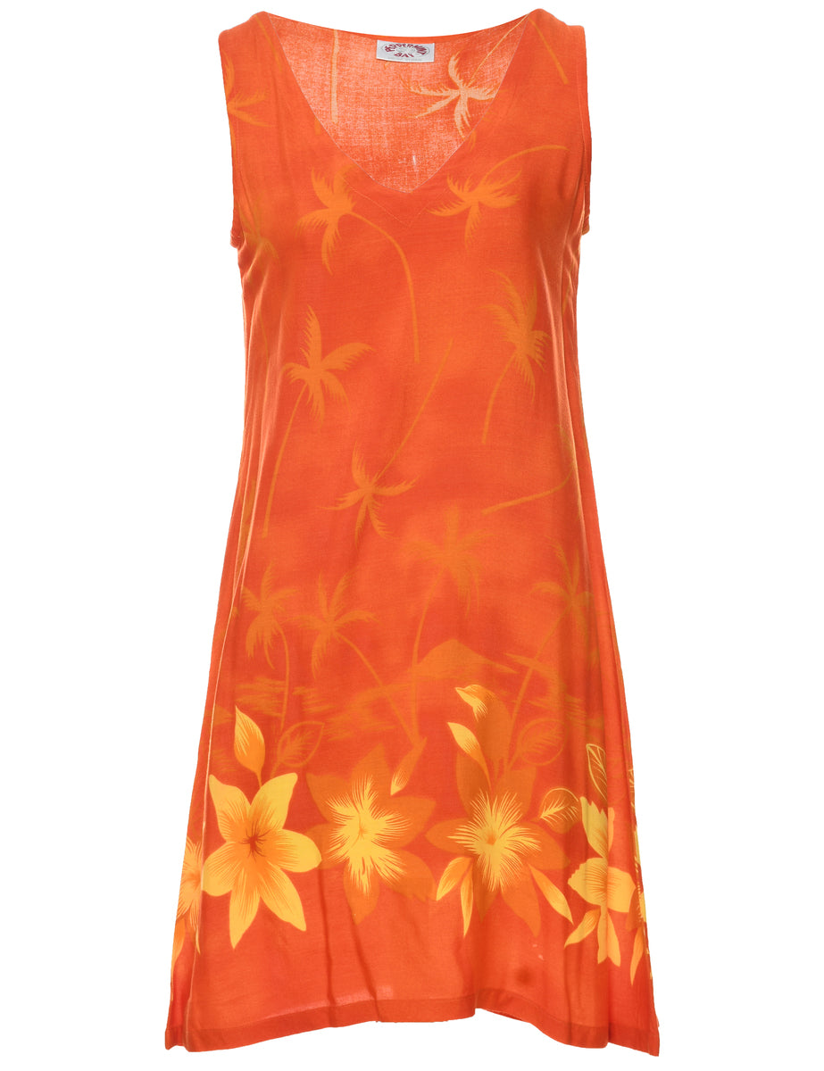Floral print dress. Peppermint Bay in orange with v neck.