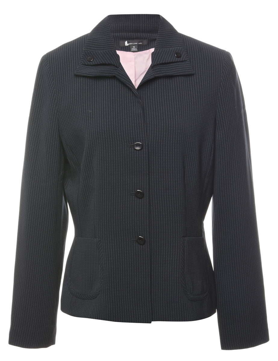 Pinstriped black jacket with full lining and built in shoulder pads.