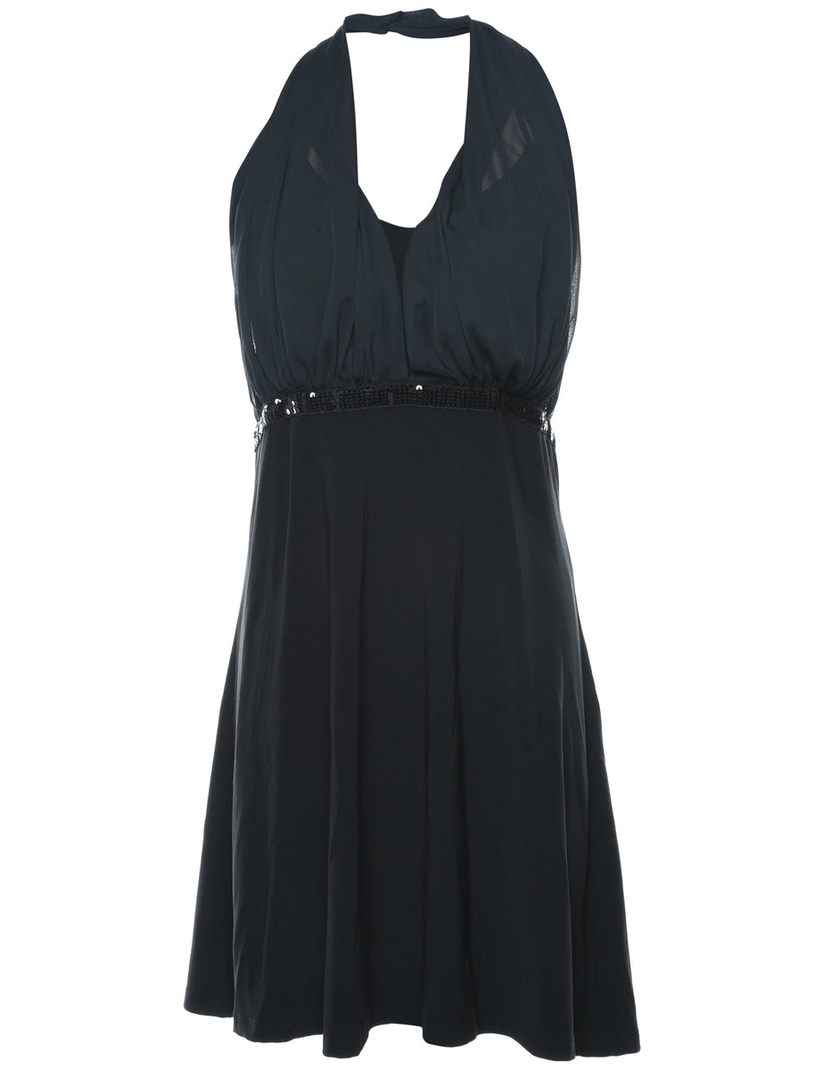 Sequined party dress. Comes in black with a halterneck and full lining.