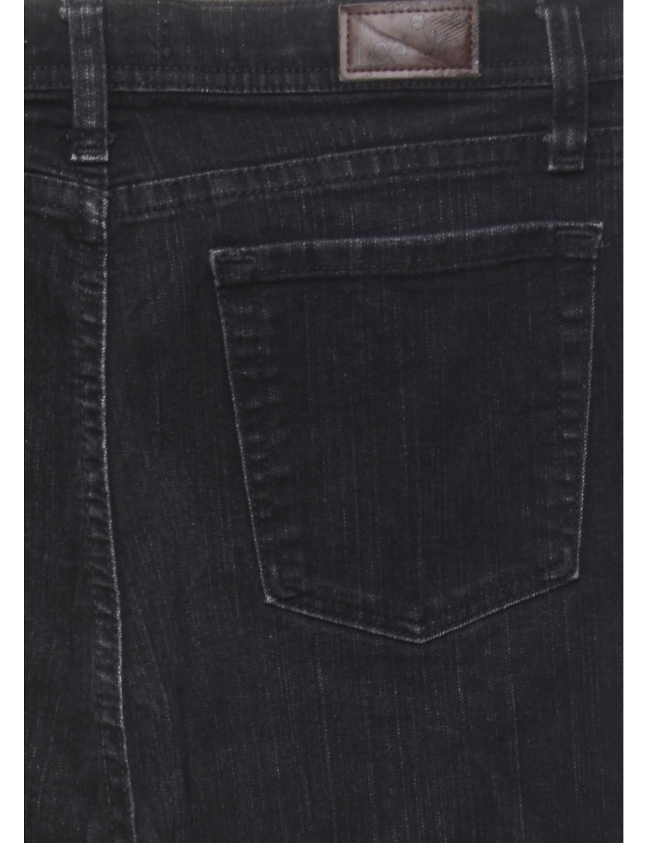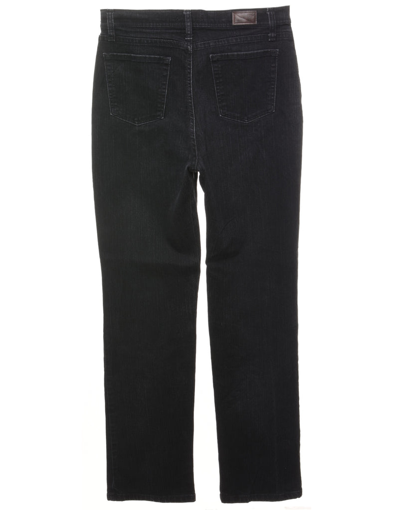 Straight leg black lee jeans with multiple pockets.