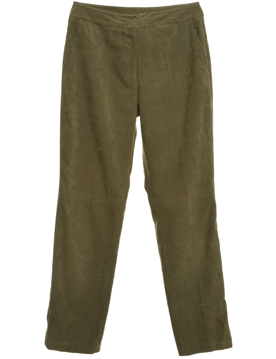 Vintage Olive Green Suede Effect Trousers - W32 L32
