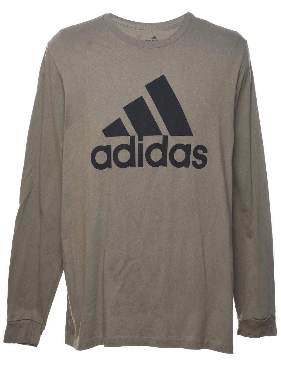 Adidas Grey & Black Long-Sleeve Printed T-shirt - XL