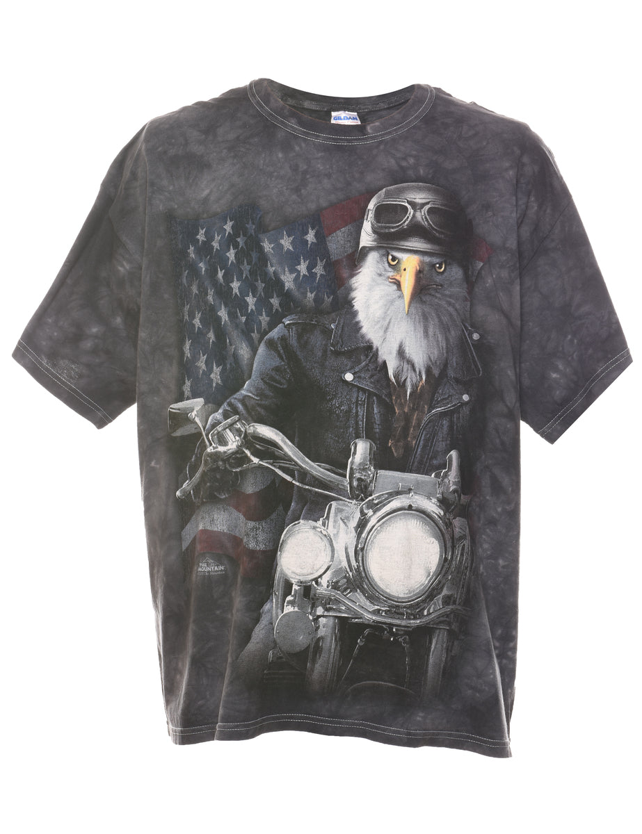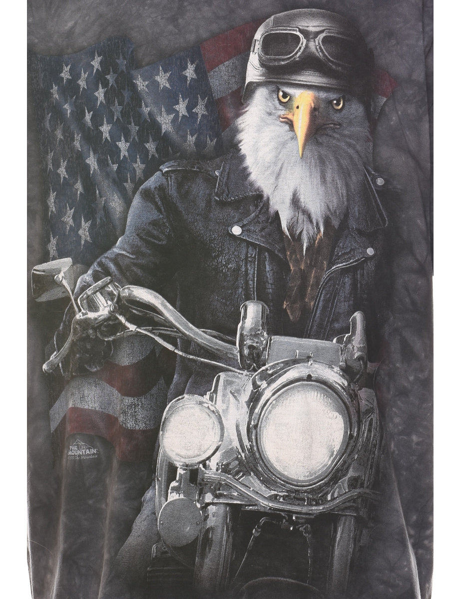 Dark Grey Tie Dye American Flag Eagle T-shirt - XL