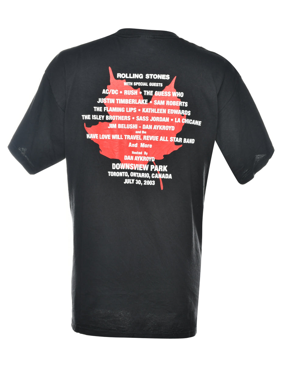 This shirt was made by Gildan. It features double-sided artwork featuring the 2003 Molson Canadian Rocks for Toronto concert (Also known as SARS-stock).