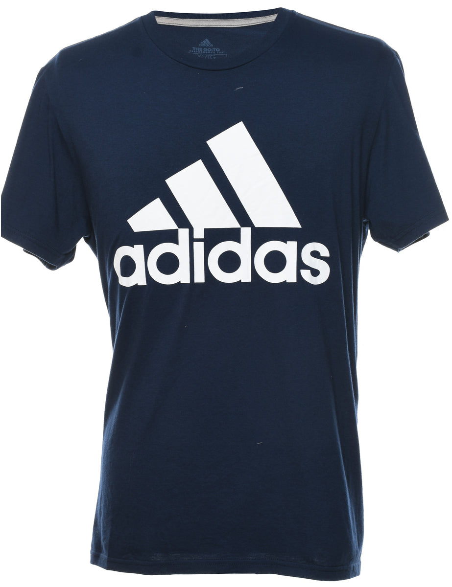 Navy & White Adidas Printed T-shirt - XL