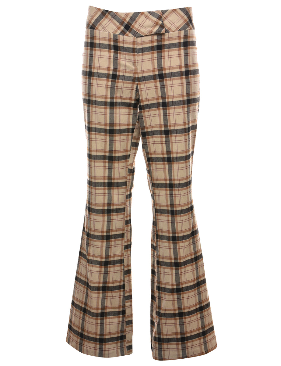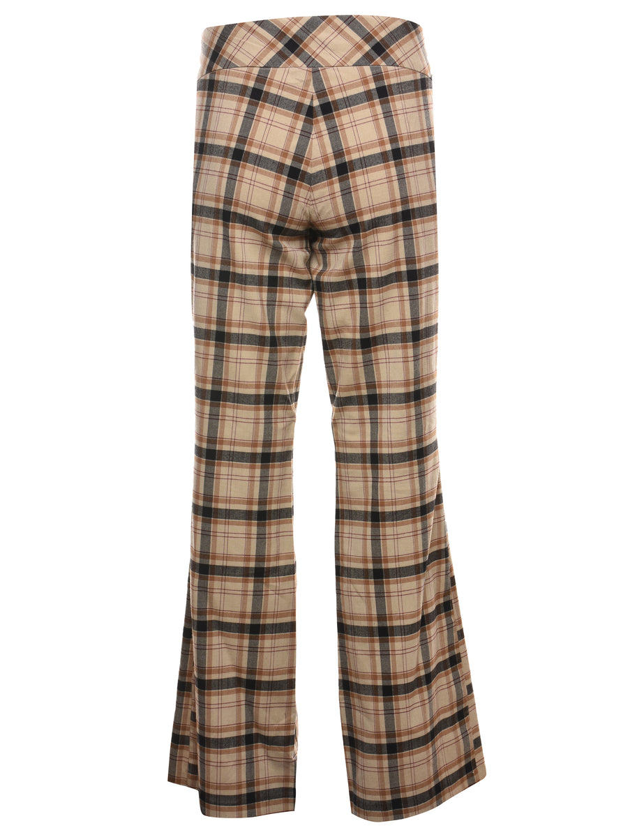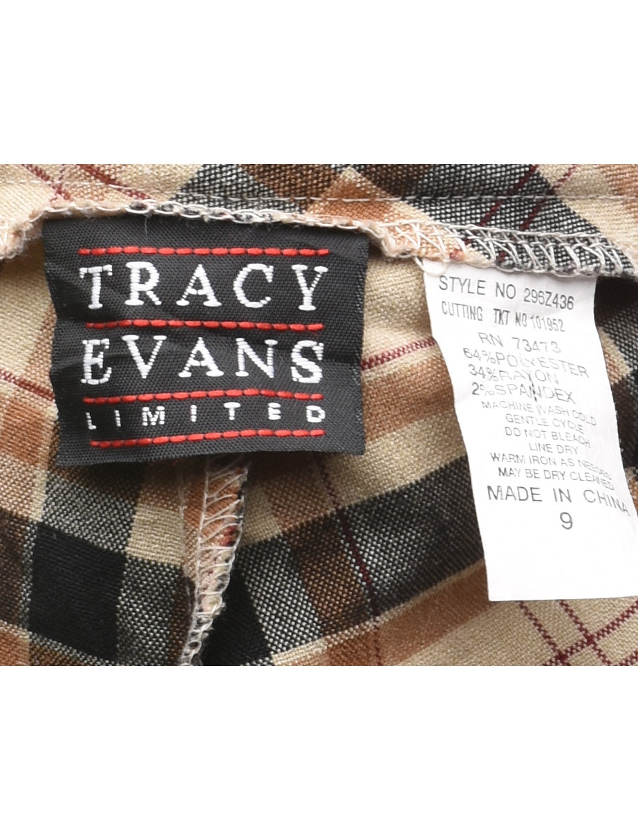Y2K Vintage 1990s Tracy Evans Limited Light Brown & Black Checked Trousers - W32 L31