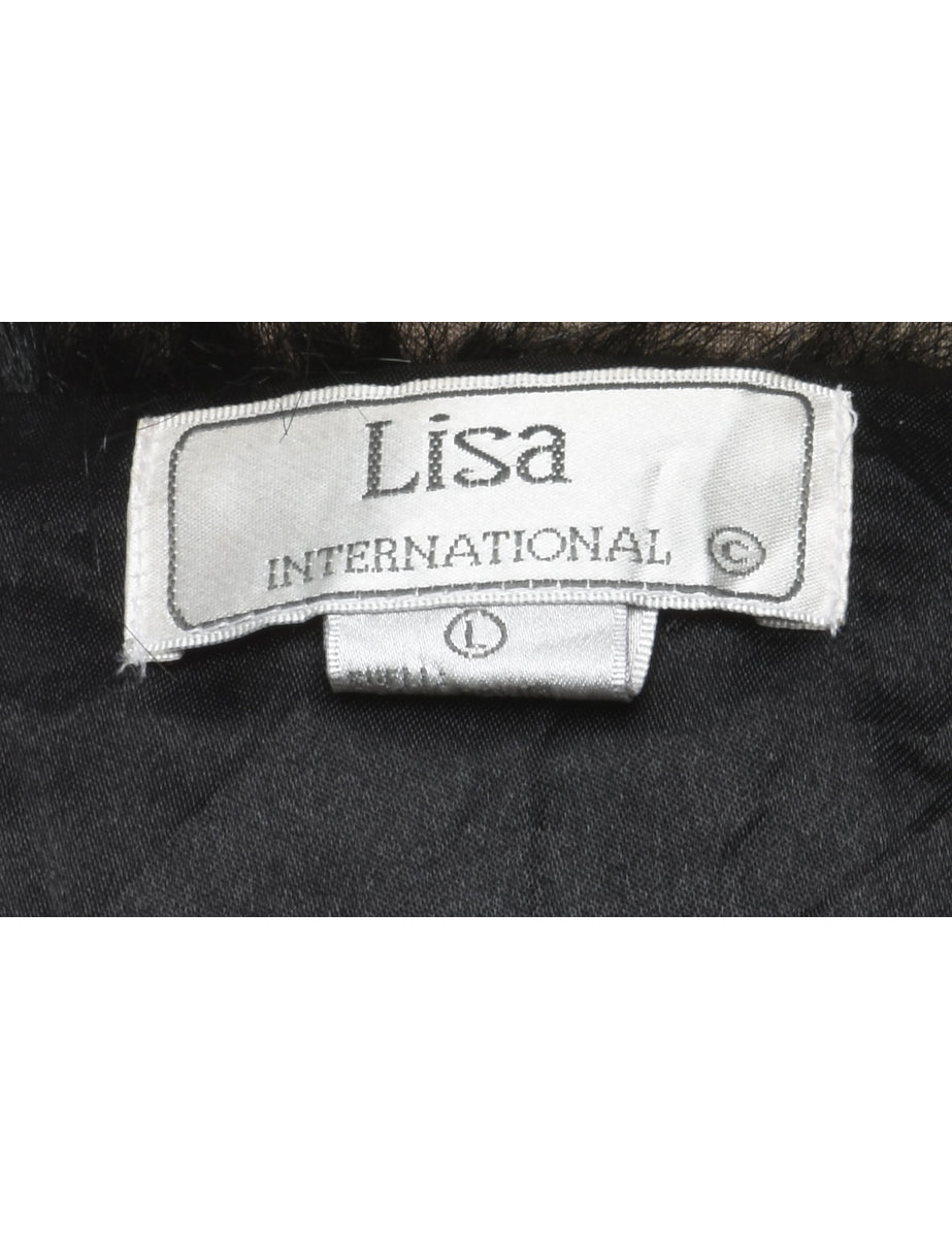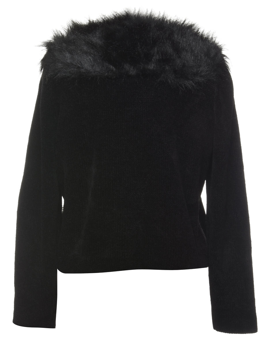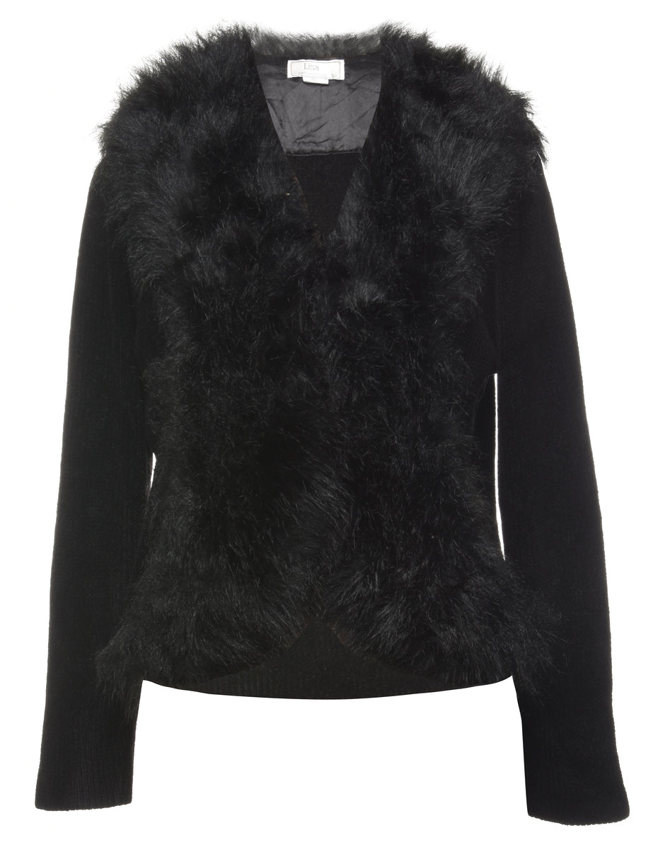 Vintage Black Faux Fur Lisa International Y2K Cardigan - L