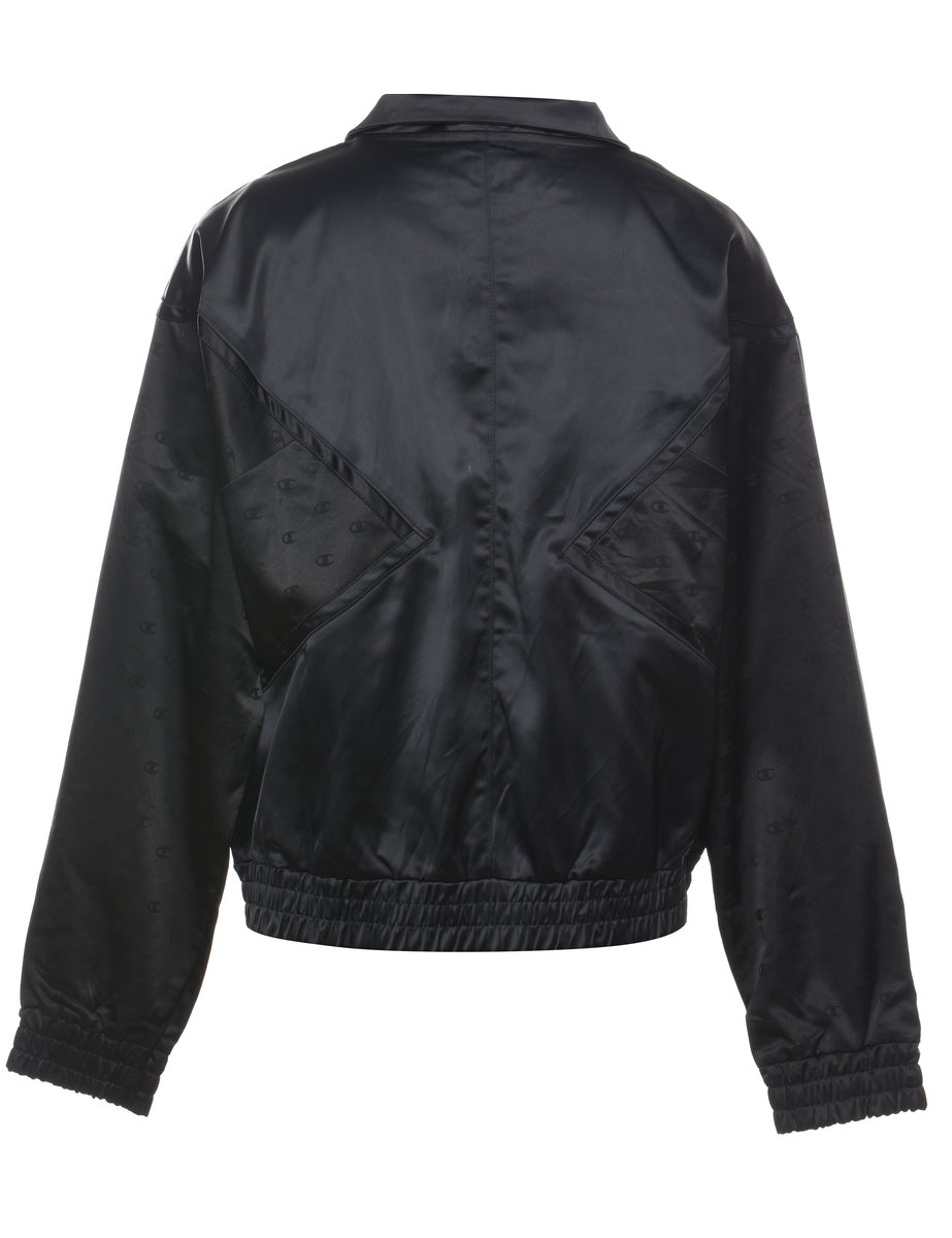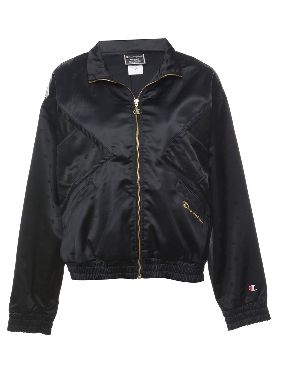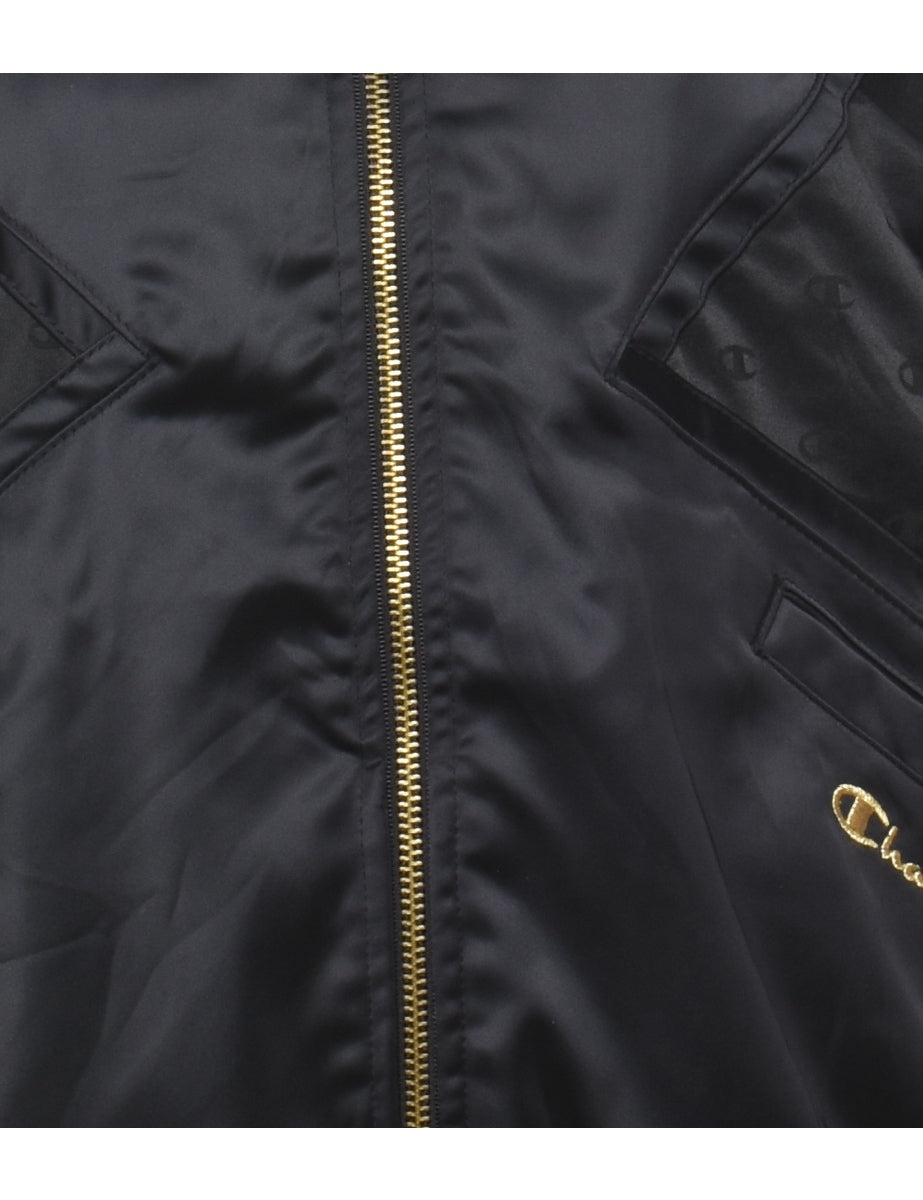 Champion black & gold embroidered silky zip-front nylon jacket complete with multiple pockets.