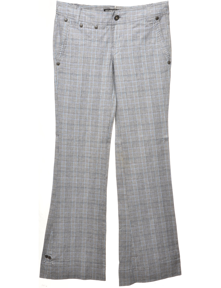 Vintage Checked Grey Y2K Office Trousers - W30 L34