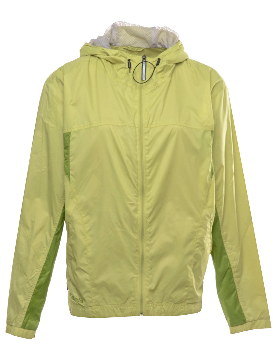 Columbia zip front nylon jacket. Comes in green with full lining and pockets.