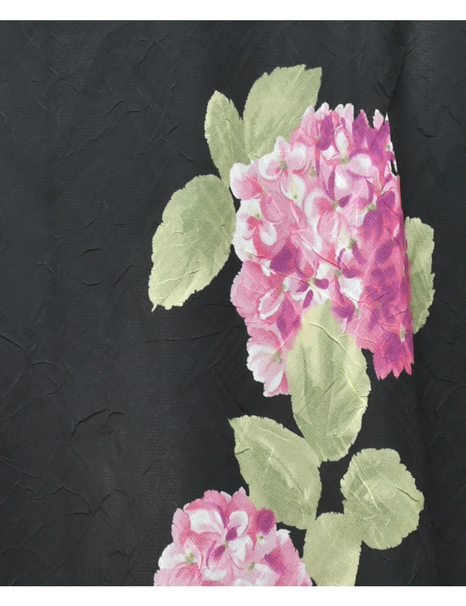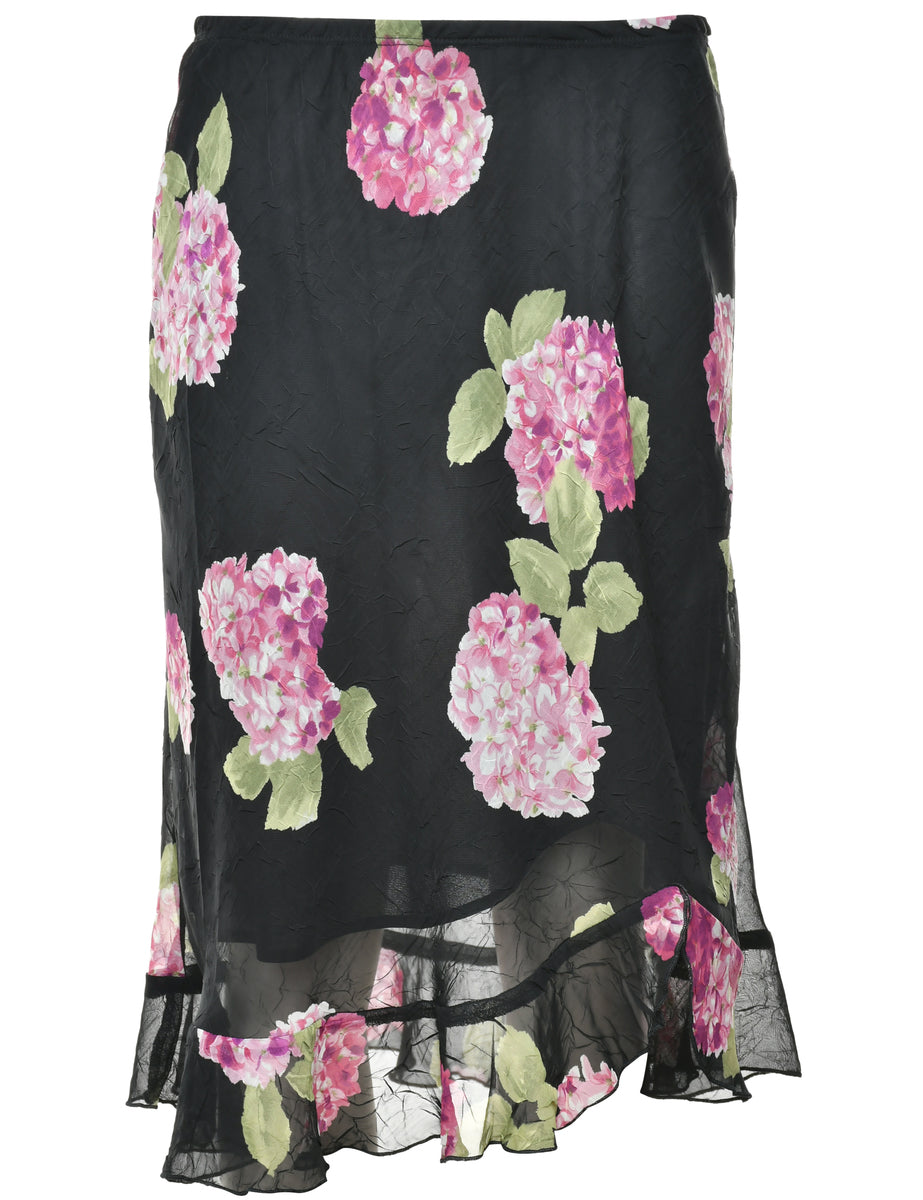 Floral print maxi skirt in black with full lining and an elasticized waist.