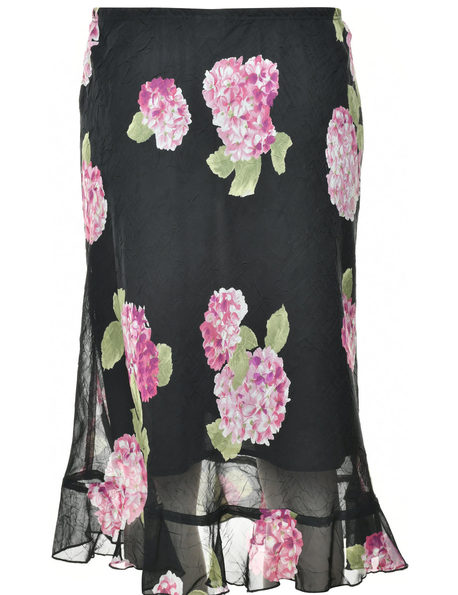 Vintage Floral Print Midi Y2K Skirt - M