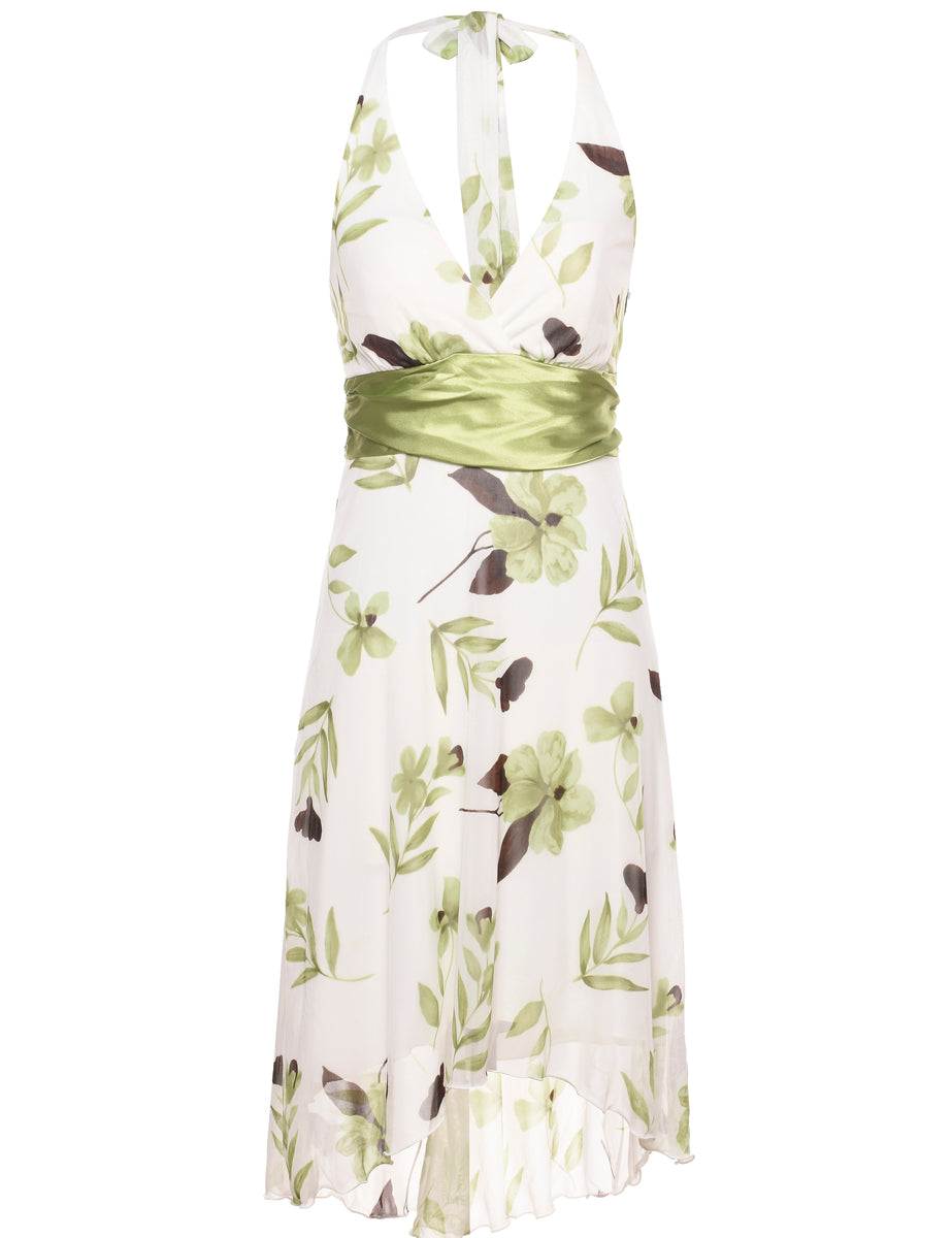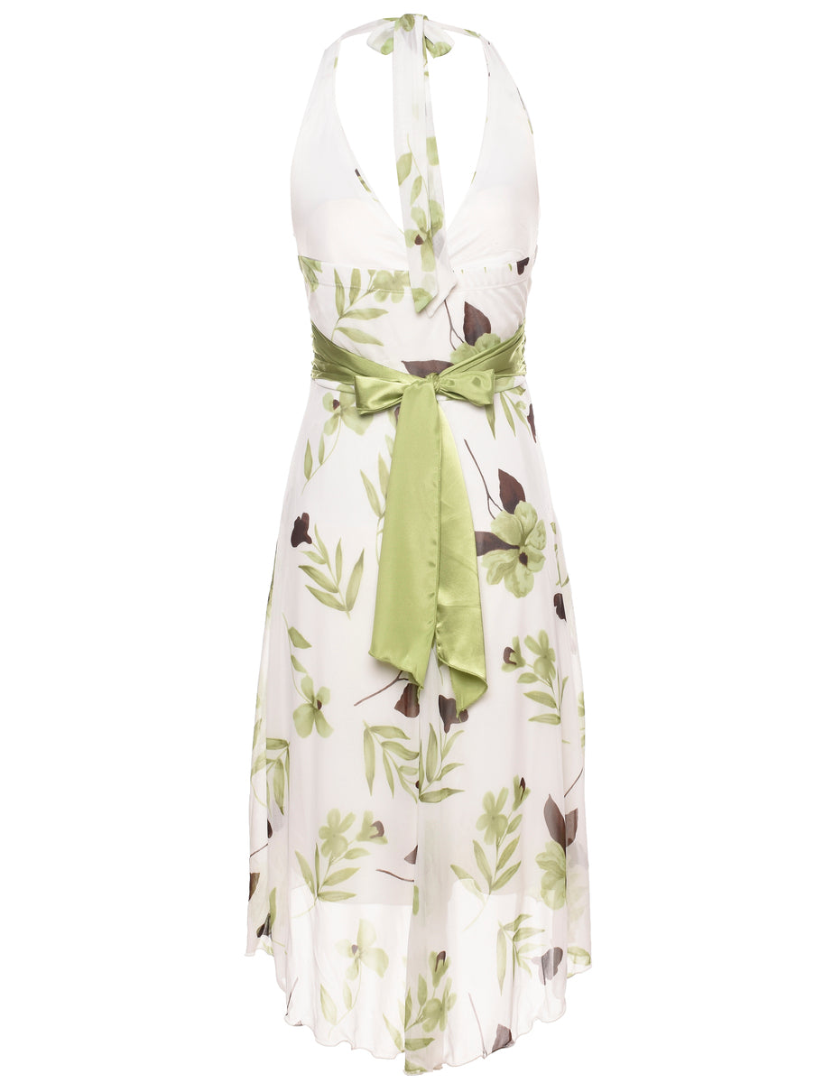 Floral Print Y2K Halter Dress - S