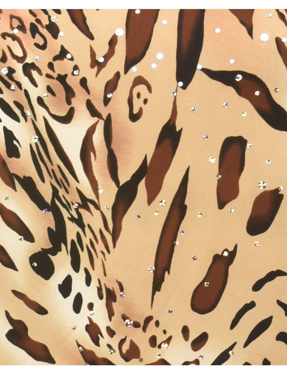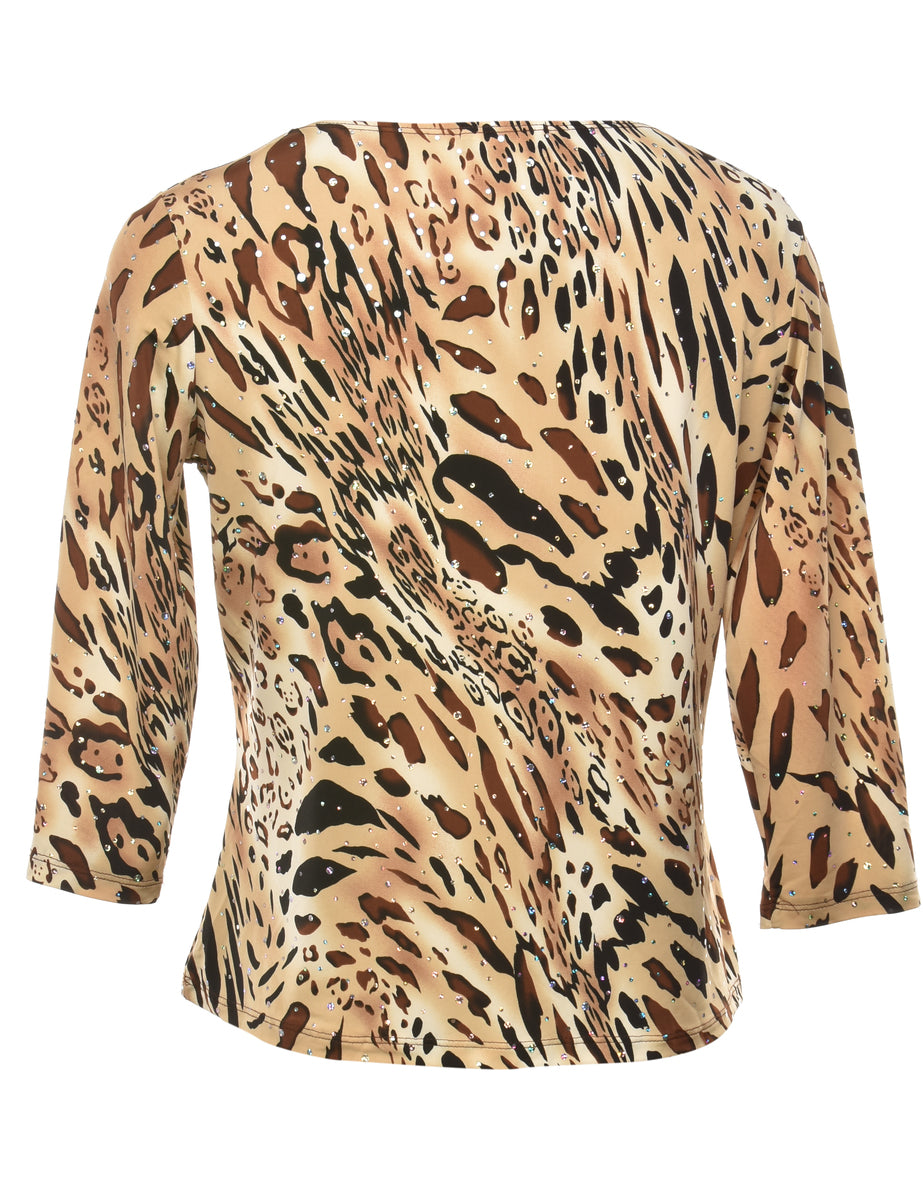 Vintage Leopard Print Y2K Embellished Top - M