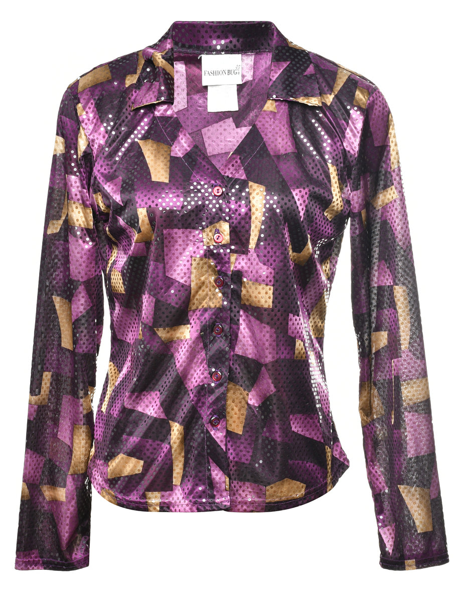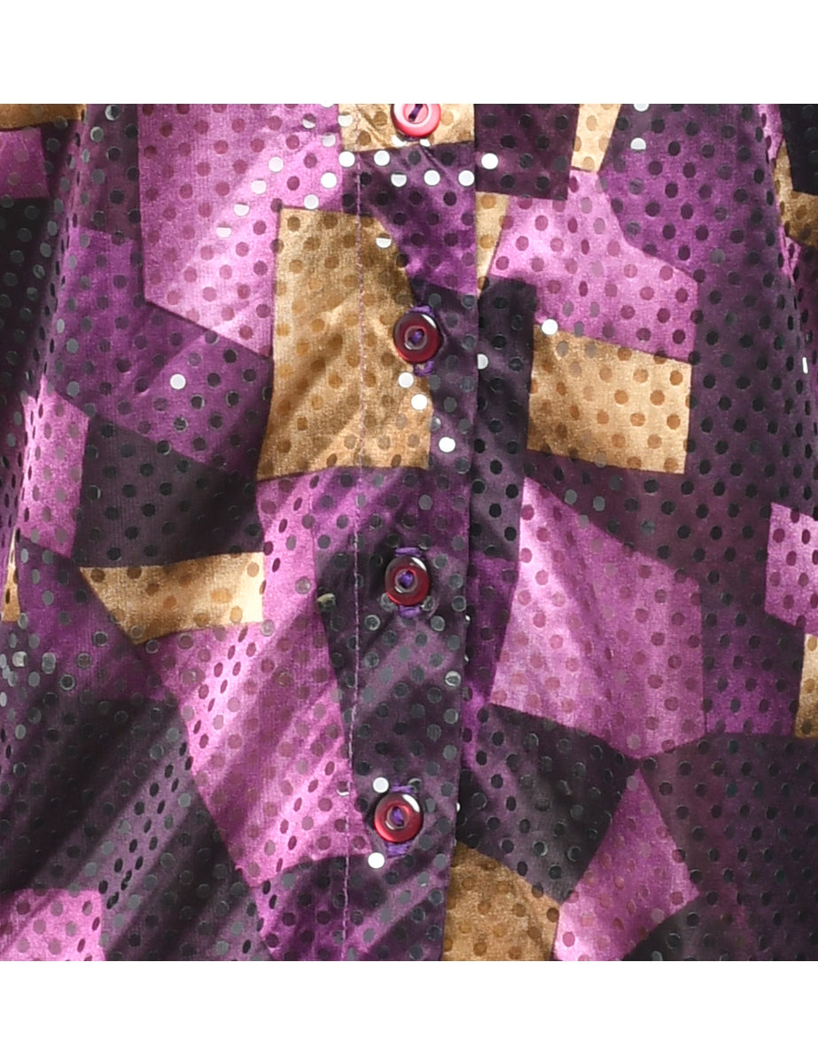 Long sleeved evening blouse in multi-colour with a v-neck.