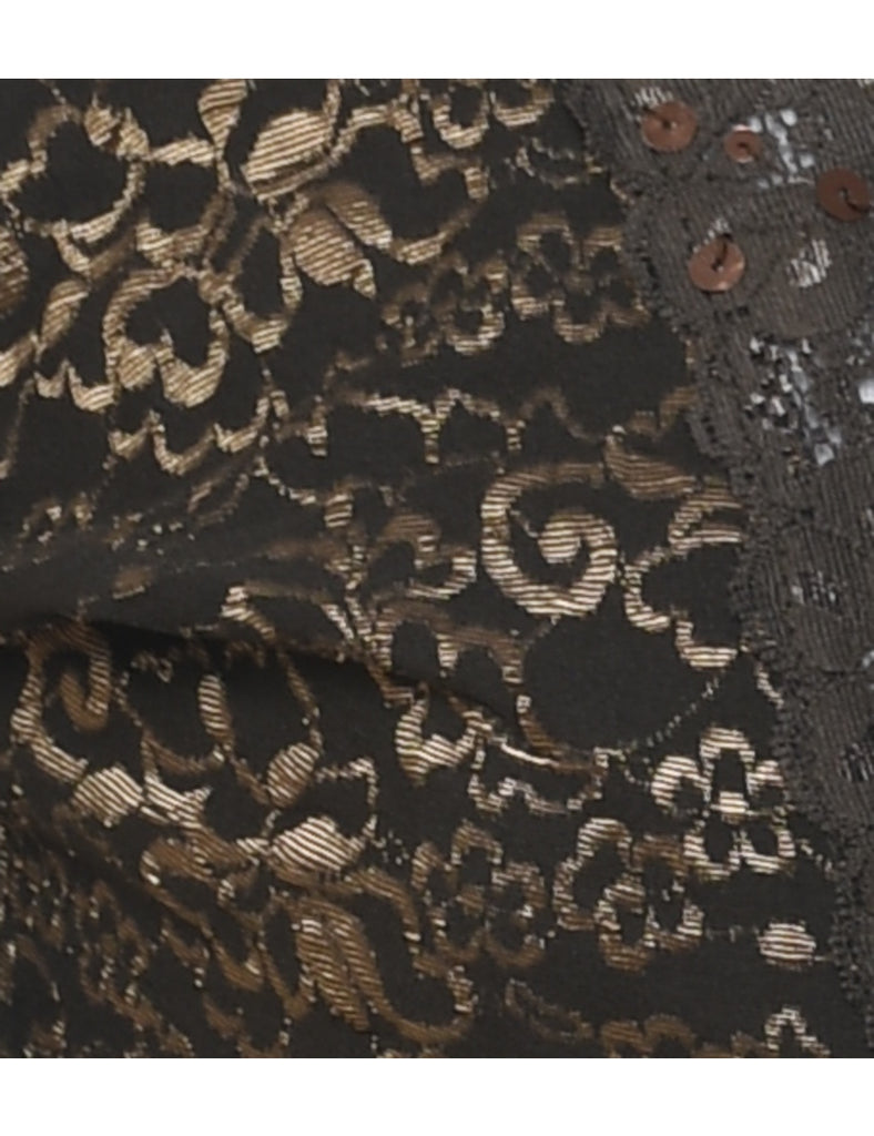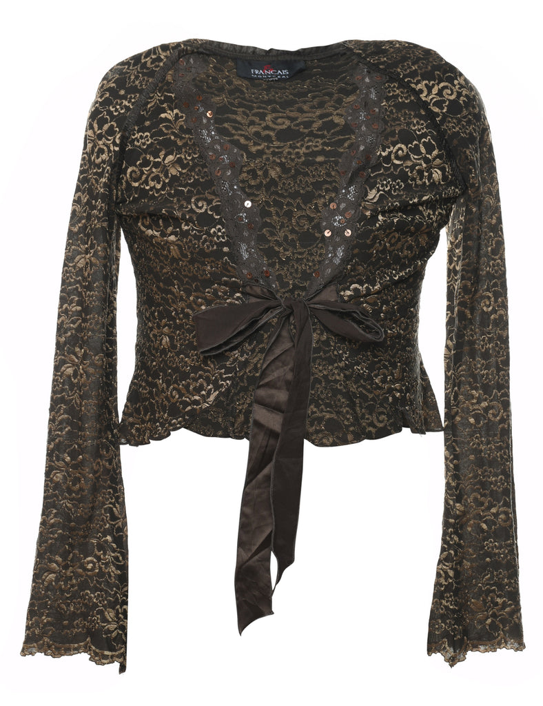 Floral lace olive green & gold evening tie-front blouse complete with sequins. From the 2000s.